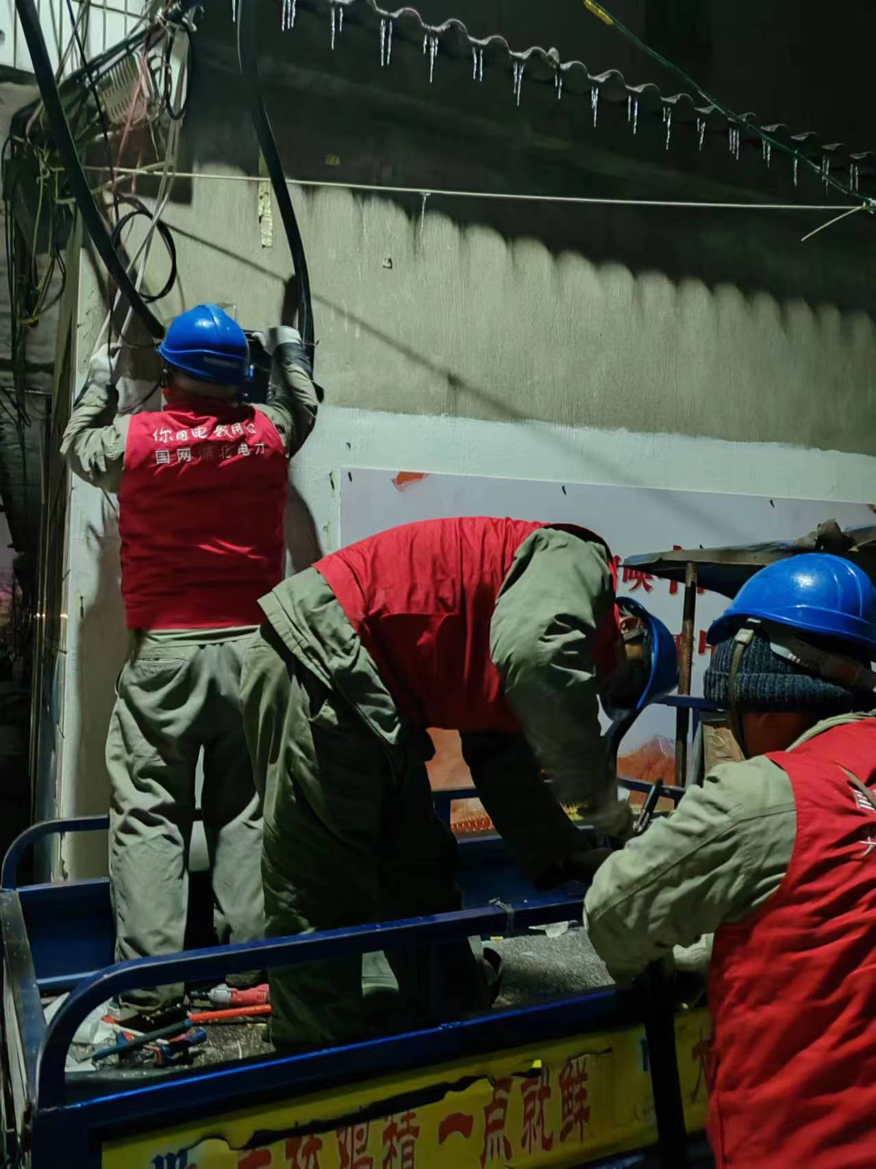 天寒地凍,大雪紛飛,刺骨的寒風吹在臉頰上,就像刀割一樣痛。冰冷的雪水落在頭發(fā)上不一會兒就結(jié)成小冰凌,但他們無暇顧及。該供電公司“鄂電紅馬甲”克服惡劣環(huán)境影響,經(jīng)過9個多小時的緊張搶修,為該臺區(qū)新架電纜200米,新裝表箱42塊,于當日順利恢復供電。