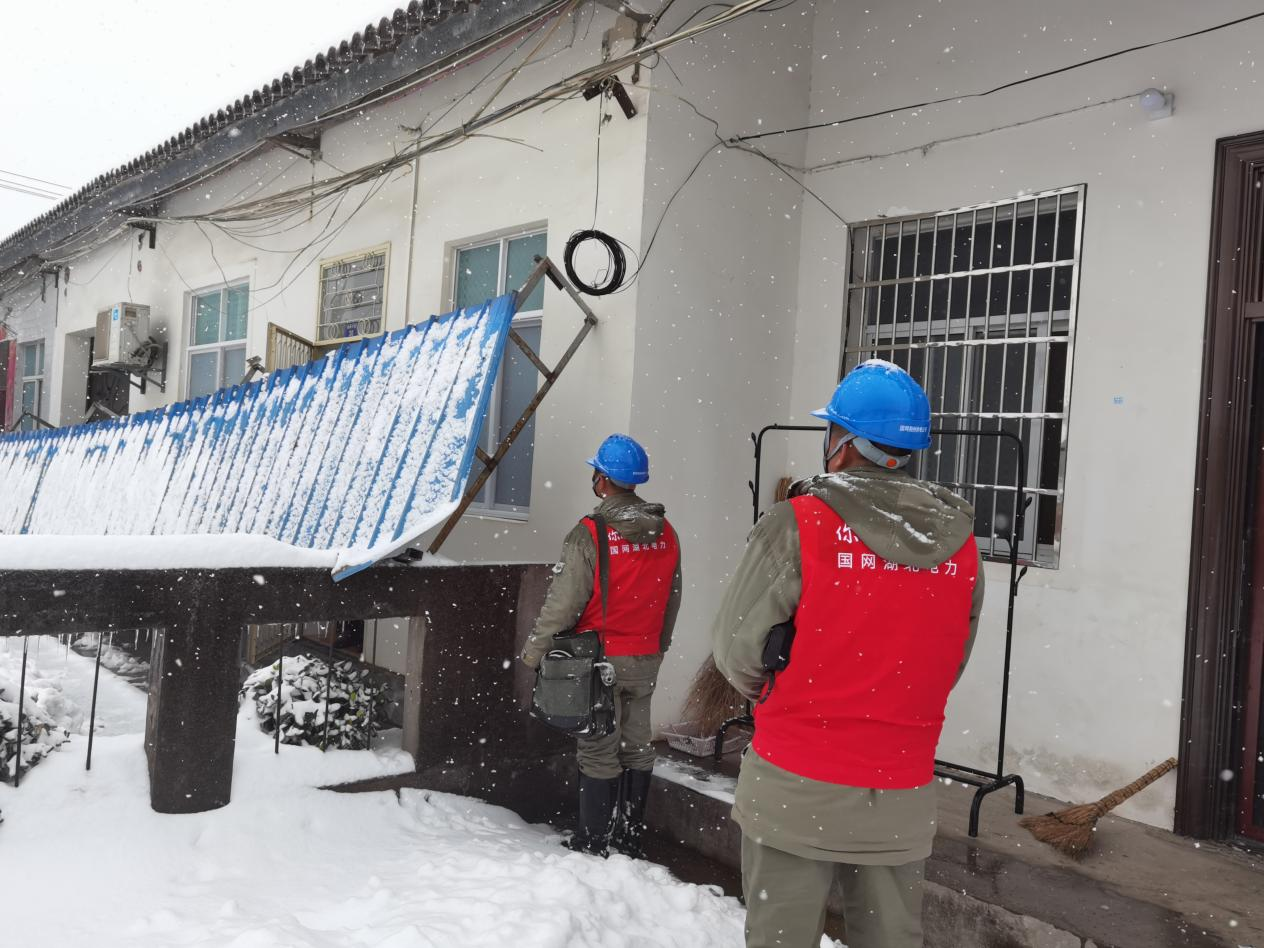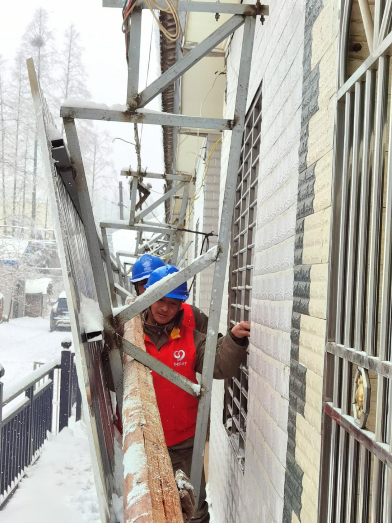 雪持續(xù)不斷地降落,密集的雪花打在臉上,讓人睜不開(kāi)雙眼,給搶修工作增加了難度。2名工作人員攜帶著工具,迎著風(fēng)雪,深一腳淺一腳地走在雪地里,抬車(chē)棚、檢查線路、查驗(yàn)表計(jì)等一系列工作緊張有序地進(jìn)行著。經(jīng)過(guò)高效迅速地處理,健康小區(qū)十幾戶居民的家里恢復(fù)了供電。