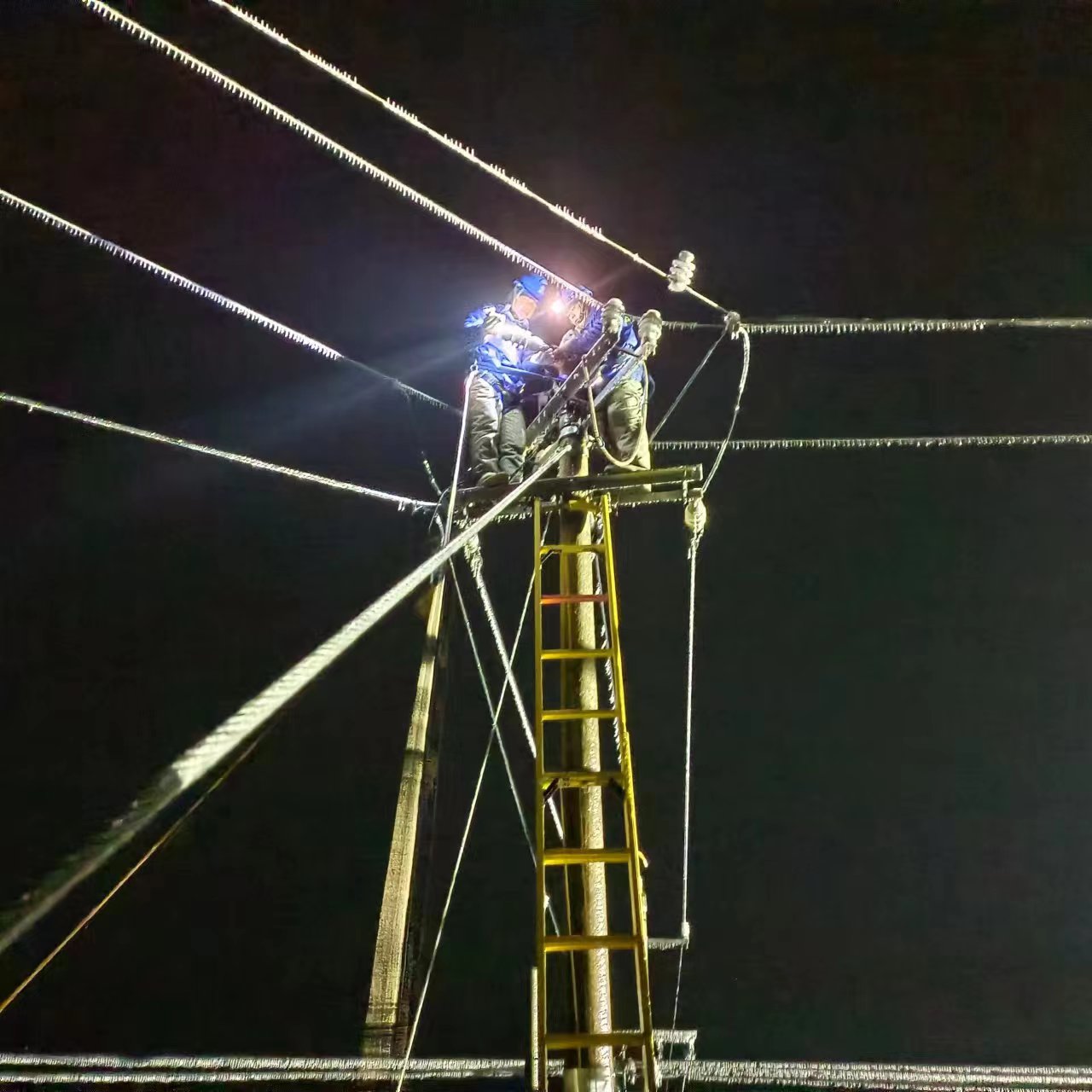 搶修工作一直持續(xù)到第二天中午,在大家的通力協(xié)作下,終于使該故障線路恢復供電,確保極端冰凍天氣下周圍居民能夠溫暖過冬。在長達20多個小時的時間里,搶修人員不眠不休,連續(xù)作戰(zhàn),轉戰(zhàn)各個故障點,將電力人的責任與擔當都映射在凜冽的寒夜里,用他們的身影匯聚成點點星光,照亮這座城市的每一個角落。
