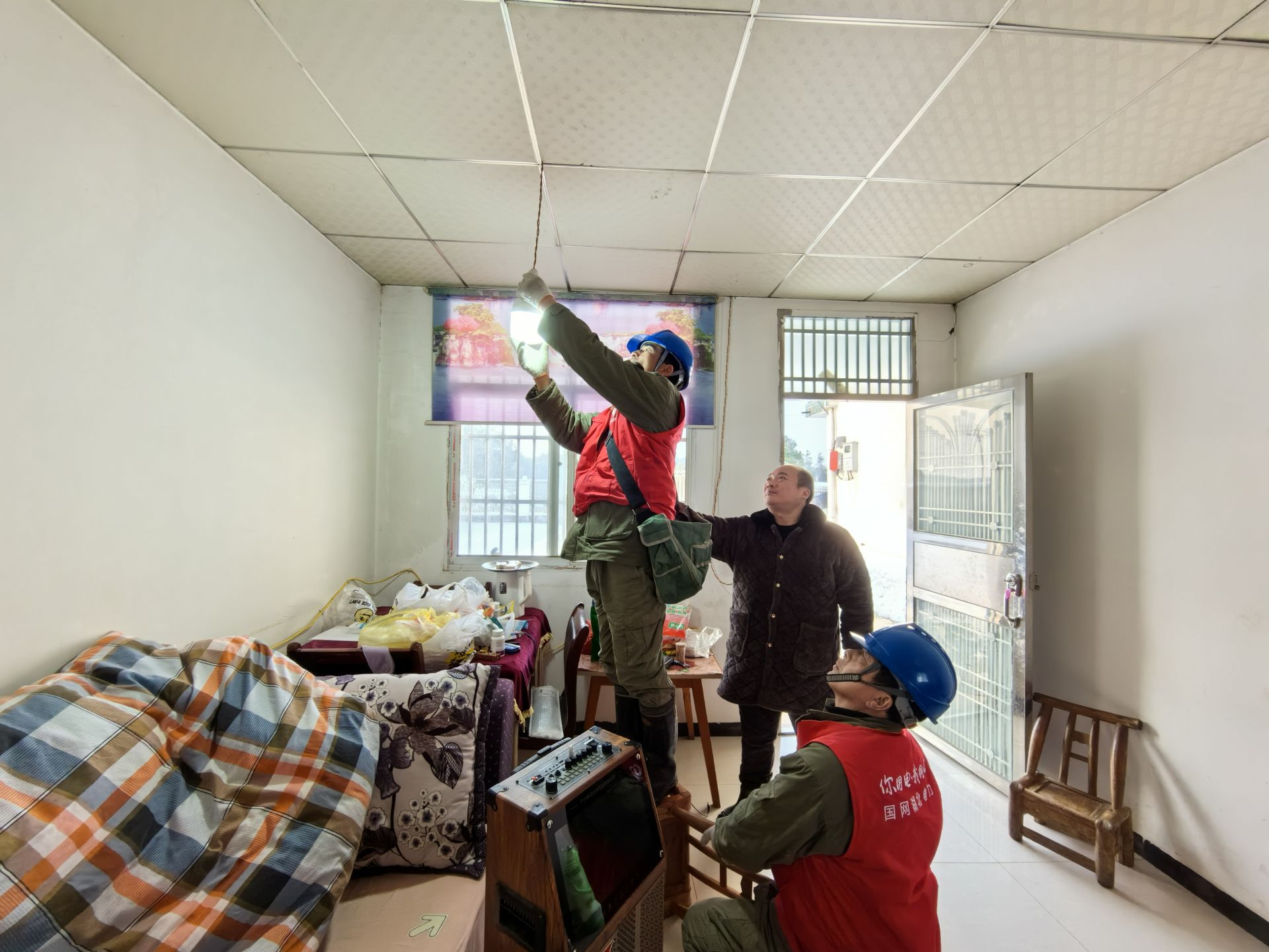 正在這時,他突然發(fā)現(xiàn)了正在門外踏雪巡線的國網(wǎng)松滋市供電公司“鄂電紅馬甲”鄧宏波、雷蓉,鄧鵬飛喜出望外,趕緊把鄧師傅他們兩人請到屋內(nèi),開心地說:宏波,你來得正好,你幫我看看,我以為大雪后,你們也不會出來。沒想到讓我看見了你,這下好了,問題可以解決了。
