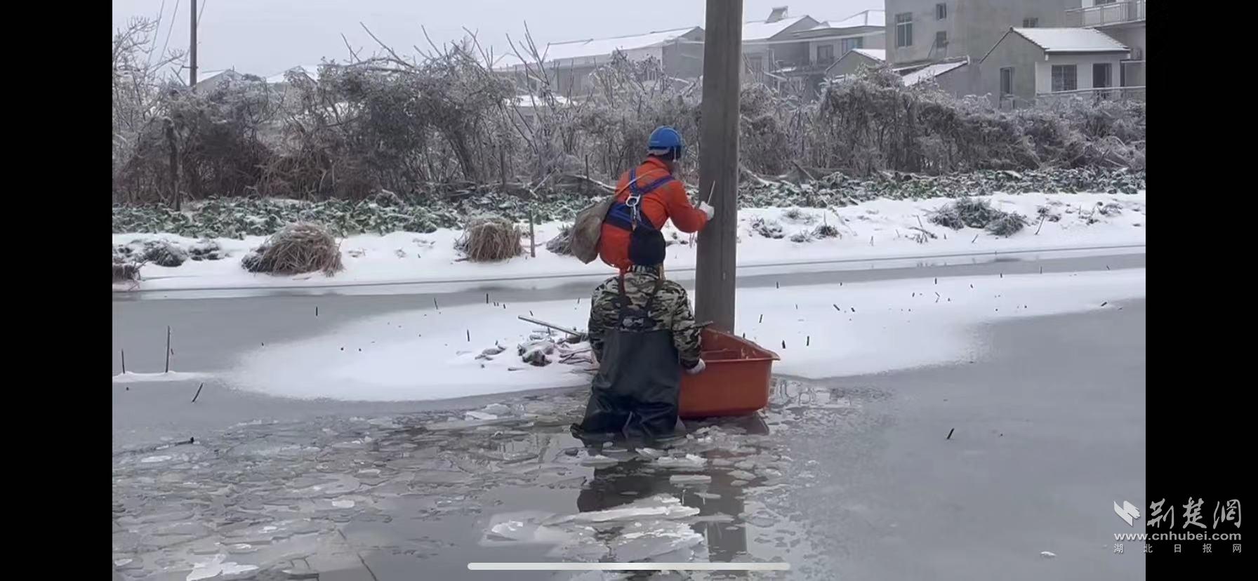 中興湖路是一條鄉(xiāng)間小路,左邊是一條河渠,右邊是成片的魚塘和農(nóng)田。放眼望去,田野穿上了潔白的棉衣,樹木全身如鑲嵌了晶瑩的水晶石,魚塘結(jié)冰,像一面光滑的鏡子。電力線路和設(shè)備受到不同程序的損害,給村民們生產(chǎn)生活帶來不便。