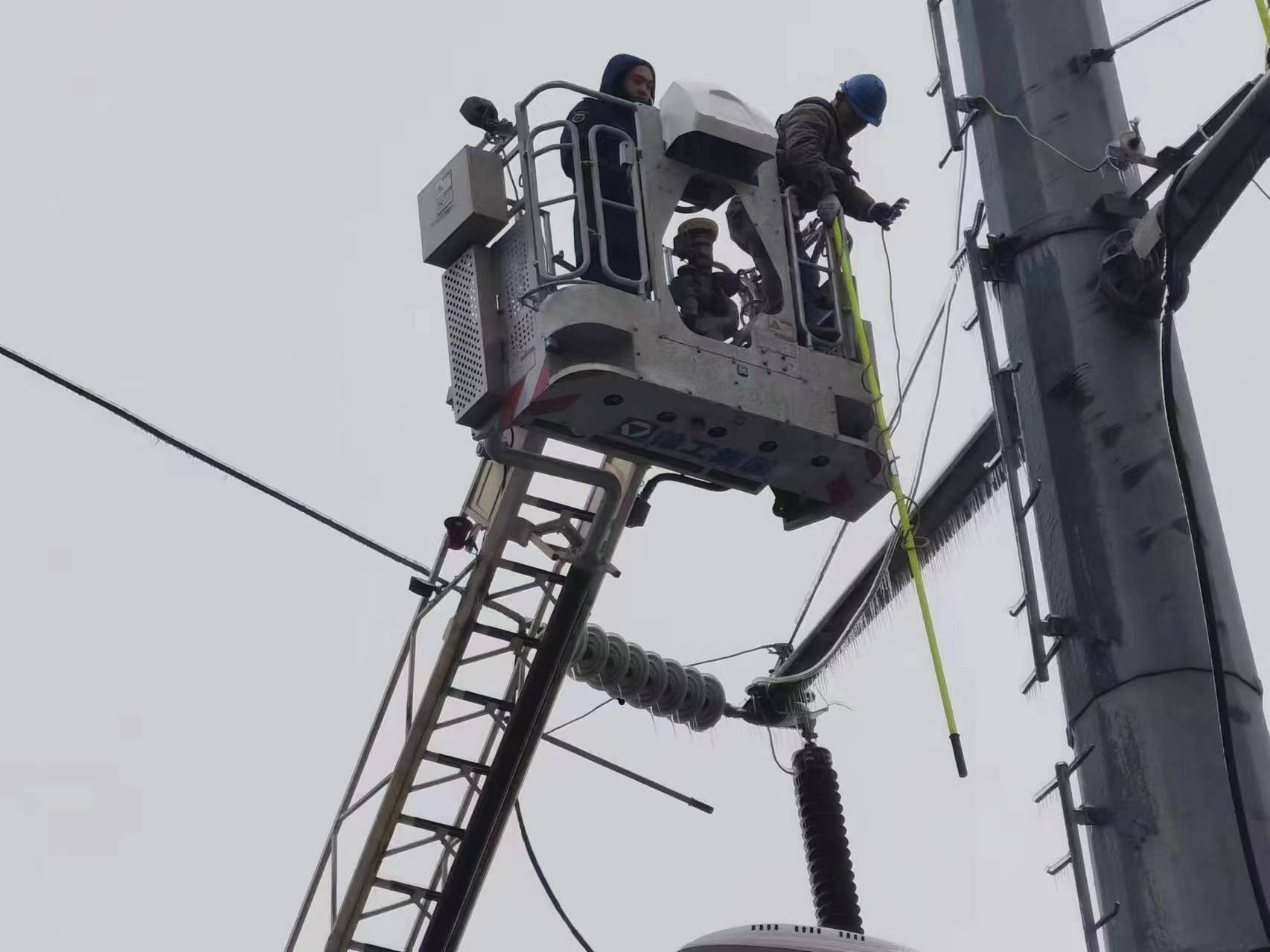 大雪過后的道路路面濕滑,交通緩慢,來往車輛、行人不斷。且由于天氣嚴(yán)寒,桿塔存在結(jié)冰現(xiàn)象,要想登桿作業(yè),必須先對(duì)桿塔進(jìn)行除冰,勢必會(huì)耽誤搶修進(jìn)度。