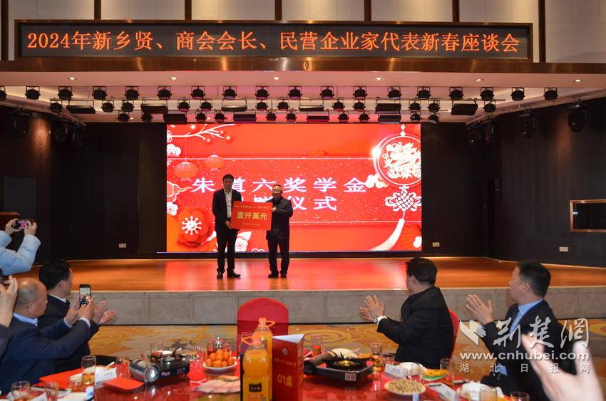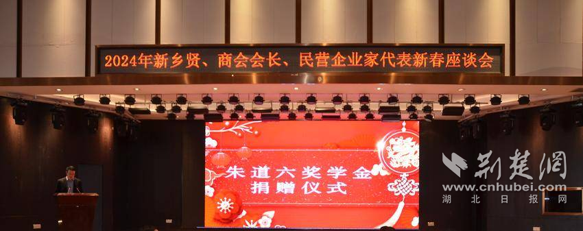荊楚網(wǎng)(湖北日?qǐng)?bào)網(wǎng))訊(通訊員易榮波 胡思順 李怡)2月16日,大悟縣隆重舉行2024年新鄉(xiāng)賢、商會(huì)會(huì)長(zhǎng)、民營(yíng)企業(yè)家代表新春座談會(huì)。座談會(huì)上,大悟縣首屆最美新鄉(xiāng)賢、楚商聯(lián)合會(huì)常務(wù)副會(huì)長(zhǎng)、天津市工商聯(lián)合會(huì)副會(huì)長(zhǎng)、天津市湖北商會(huì)會(huì)長(zhǎng)、天津路順科技產(chǎn)業(yè)集團(tuán)董事長(zhǎng)朱道六,再次展現(xiàn)大愛善舉,捐資1000萬元給大悟一中,設(shè)立“朱道六獎(jiǎng)學(xué)金”,大悟一中校長(zhǎng)熊俊利上臺(tái)接受捐贈(zèng)。這是繼2018年,朱道六為武漢大學(xué)人才發(fā)展基金捐款1000萬元后,為了支持教育事業(yè)的發(fā)展捐贈(zèng)的第二個(gè)一千萬元。