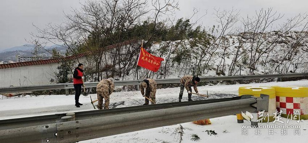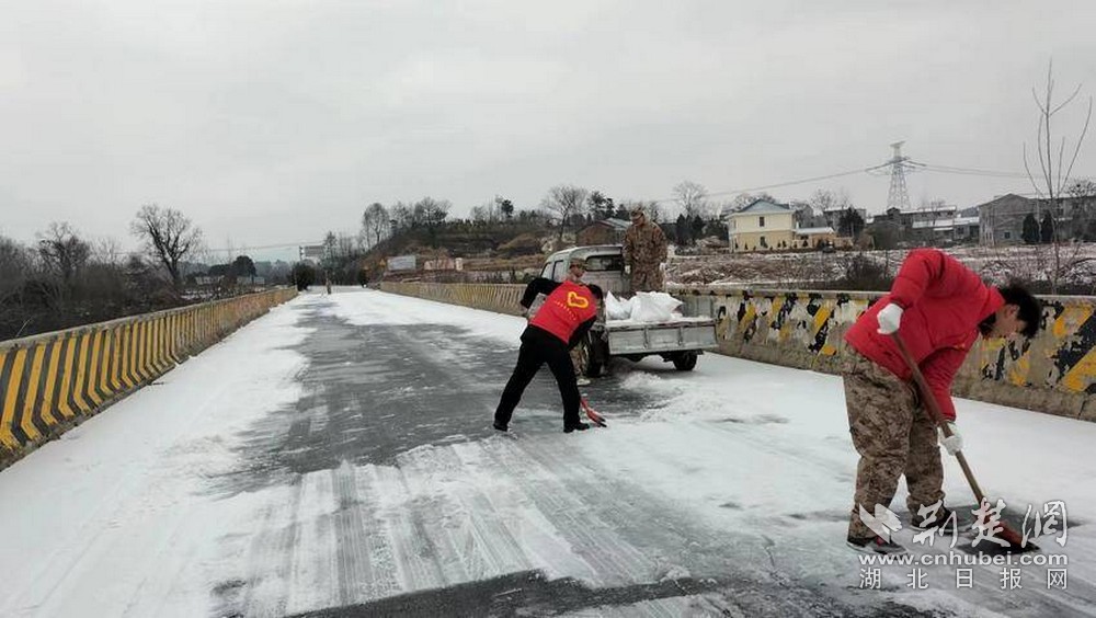 陽(yáng)平鎮(zhèn)民兵志愿者到京珠高速鏟冰除雪,禮山學(xué)校志愿者來(lái)到京港澳高速出口除冰雪保暢通??h直單位和鄉(xiāng)鎮(zhèn)區(qū)組織多名志愿者上路、進(jìn)社區(qū)開(kāi)展掃雪除冰行動(dòng),方便群眾安全出行。