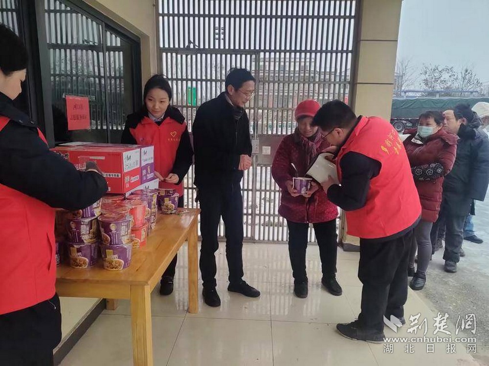 21日,縣開(kāi)發(fā)區(qū)第一時(shí)間組織志愿者來(lái)到高速上,為滯留人員發(fā)放方便面、雞蛋、熱水等生活物資。