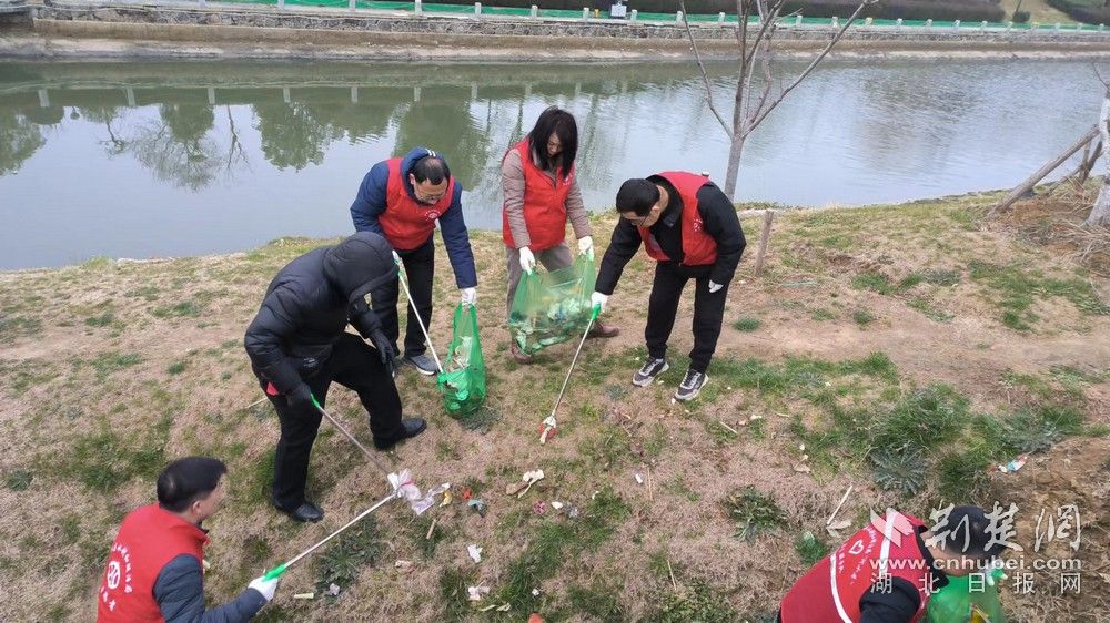 3月1日,雪后初晴。該局班子成員帶頭,率領(lǐng)干部職工80人來到城東曲陽河,開展以“云尚花開 德潤夢澤”為主題的志愿清河行動。