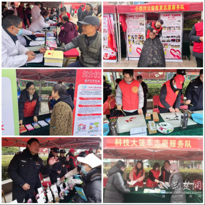 活動(dòng)現(xiàn)場(chǎng),熱鬧非凡,21支志愿服務(wù)隊(duì)伍、500多名志愿者以“公益集市”的形式為群眾提供各類志愿服務(wù)?!敖】禌樗敝驹阜?wù)隊(duì)、“小四川”公益剪發(fā)志愿服務(wù)隊(duì)、“翰墨文心”志愿服務(wù)隊(duì),現(xiàn)場(chǎng)為群眾義診、義剪、送畫;巾幗志愿服務(wù)隊(duì)、“北極星”志愿服務(wù)隊(duì)、“德安法治”志愿服務(wù)隊(duì)、“科技大篷車”志愿服務(wù)隊(duì)等隊(duì)伍,為群眾送去女性健康知識(shí)、法律法規(guī)、禁毒知識(shí)、科普知識(shí)等,得到市民一致好評(píng)。
