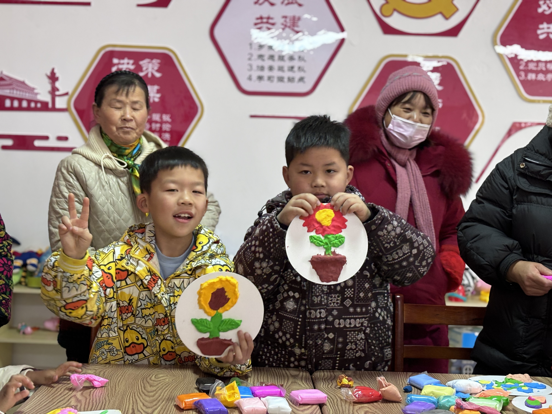 親子手工環(huán)節(jié),志愿者教小朋友制作婦女節(jié)禮物“黏土花束”,“首先我們捏成一個球,搓一搓,然后在卡紙上壓一壓”……孩子們一邊聽著志愿者的講解,一邊自己動手制作,家長們在一旁協(xié)助,不一會兒,一束束美麗的“黏土花”呈現(xiàn)在了卡紙上?!拔乙盐易龅哪档せㄋ徒o媽媽,祝她婦女節(jié)快樂!”,“我要把我的作品送給奶奶,謝謝她每天送我上學(xué),給我洗衣服,給我做飯吃”,孩子們你一言我一語地表達(dá)著自己對媽媽、奶奶、外婆的祝福,現(xiàn)場氛圍格外溫馨。