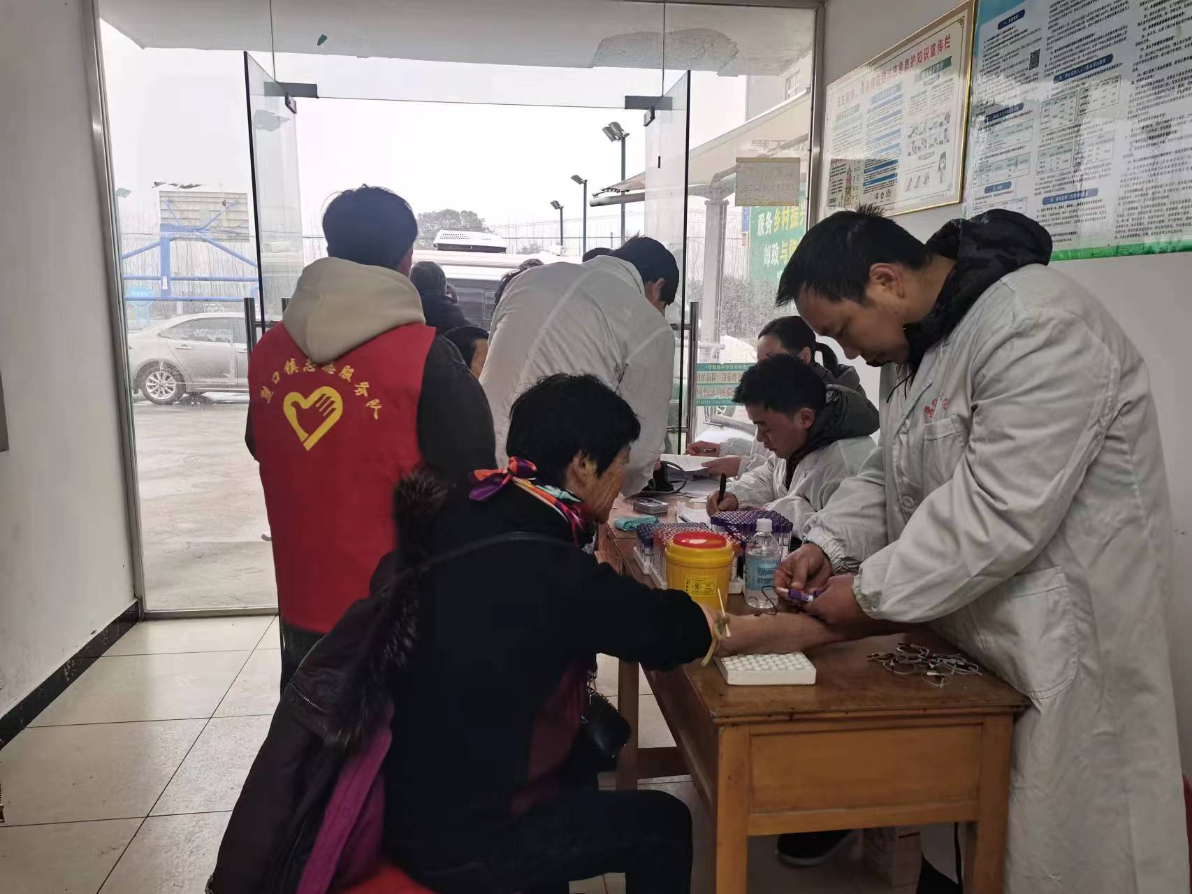 在中務(wù)垸村,來自熊口衛(wèi)生院的醫(yī)護(hù)志愿者們設(shè)置了義診平臺,通過測量血壓、聽診查體、免費咨詢等形式為村居群眾做好健康保健服務(wù),村志愿者們現(xiàn)場幫助維護(hù)秩序,發(fā)放健康宣傳單,以行動實踐雷鋒精神。