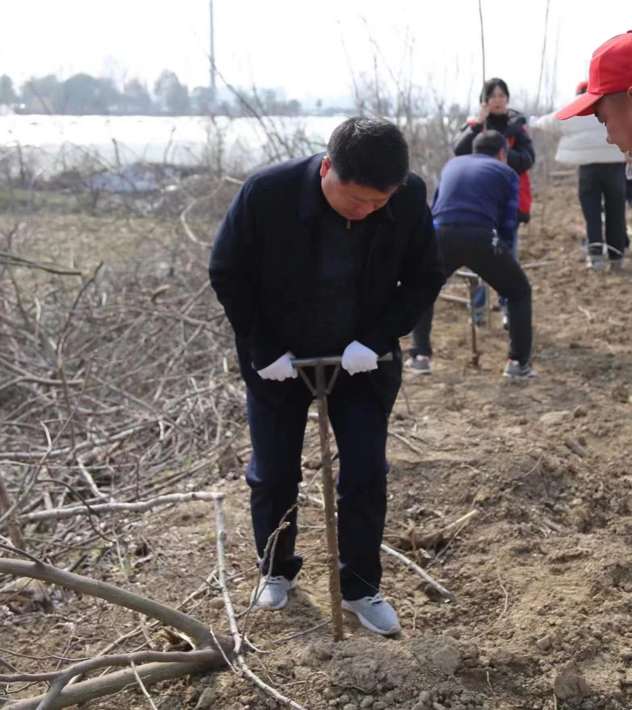 植樹(shù)現(xiàn)場(chǎng)人頭攢動(dòng),熱鬧非凡。在專業(yè)人員的指導(dǎo)下,管理區(qū)黨委班子率先垂范,帶領(lǐng)大家一起行動(dòng),大家擼起袖子、拿起工具投入到植樹(shù)中。有的人揮鍬挖土,有的人栽植樹(shù)苗,有的人培土圍堰,還有的人打水澆灌,在眾人的分工協(xié)作和配合下,不多時(shí),原本荒蕪的區(qū)域便被片片苗木驟然換新。一棵棵小樹(shù)苗就這樣在周磯管理區(qū)“安家落戶”,為和美周農(nóng)又增添了一抹綠色和生機(jī)。