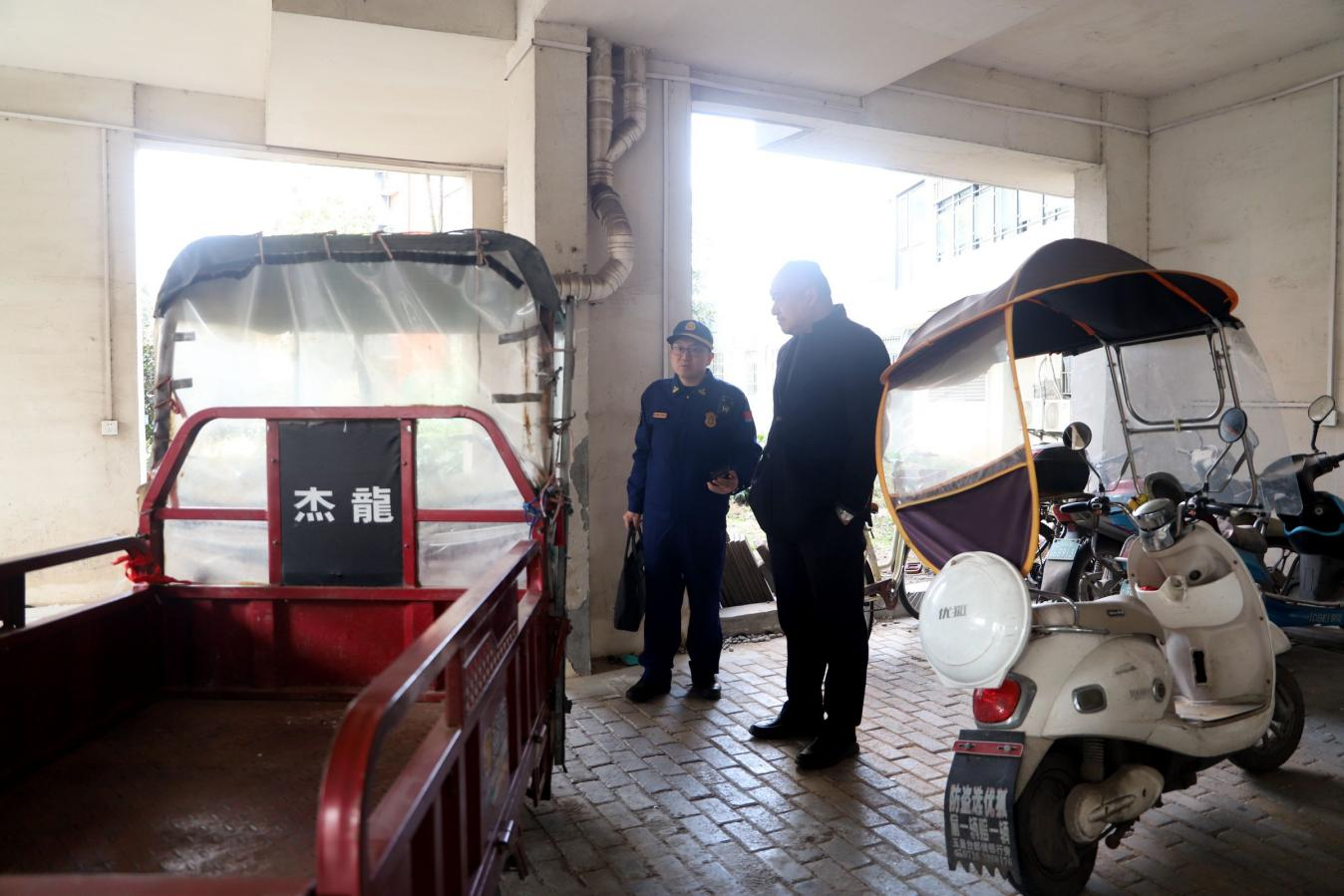“您好,這是樓梯口,不能停放電動車,請趕緊推至室外安全位置……”消防監(jiān)督員重點對居民住宅小區(qū)公共門廳、樓梯間、安全出口等公共區(qū)域是否存在電動自行車違規(guī)停放、飛線充電等情況進行檢查,在檢查中,對發(fā)現(xiàn)的違規(guī)停放、“飛線充電”等行為進行現(xiàn)場清理,并對業(yè)主進行面對面的宣傳教育,講解電動自行車“進樓入戶”的危險性、保持生命通道暢通的重要意義以及如何預(yù)防電動自行車火災(zāi)等消防安全常識。