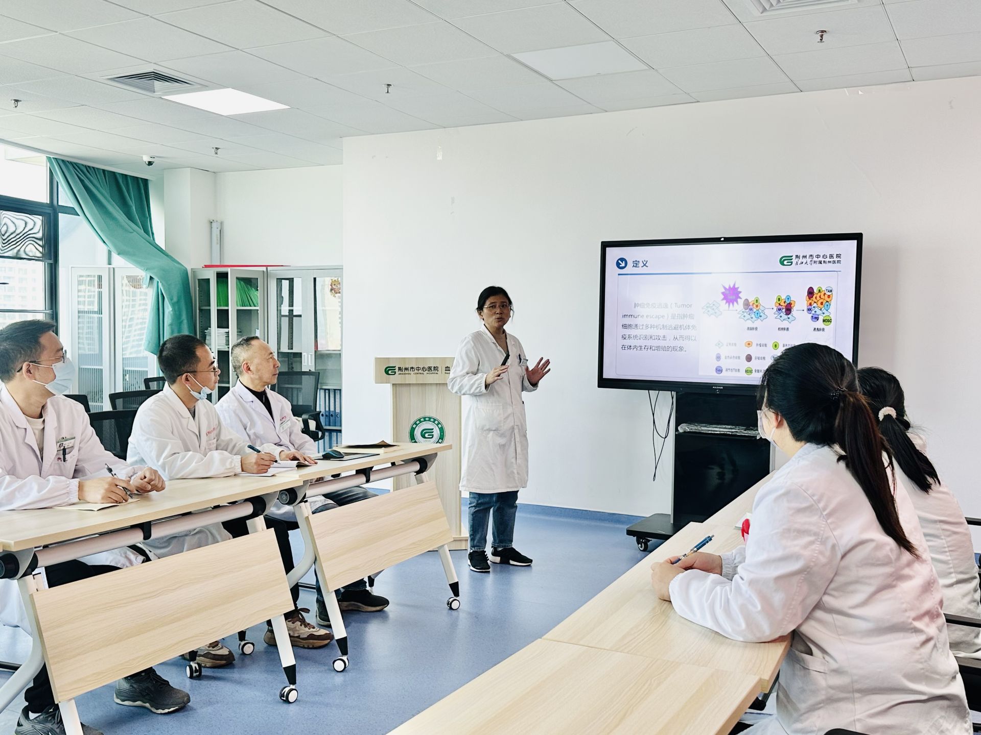 作為醫(yī)院血液內(nèi)科領(lǐng)軍人,唐元艷制定規(guī)培計(jì)劃,設(shè)置培訓(xùn)課程內(nèi)容。她開(kāi)展分層次教學(xué)、分階梯教學(xué)、學(xué)生講課等形式多樣教學(xué)活動(dòng)。