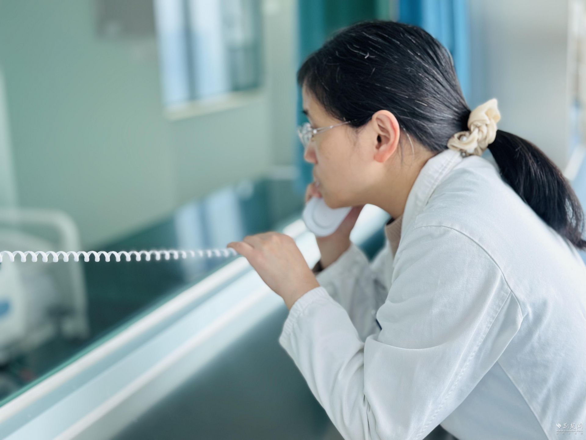 唐元艷在骨髓移植倉(cāng)探視病人 記者 喻昭陽(yáng)攝