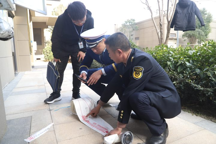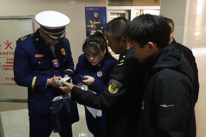 檢查組正在查看物業(yè)日常消防工作開展情況 攝影 石慶