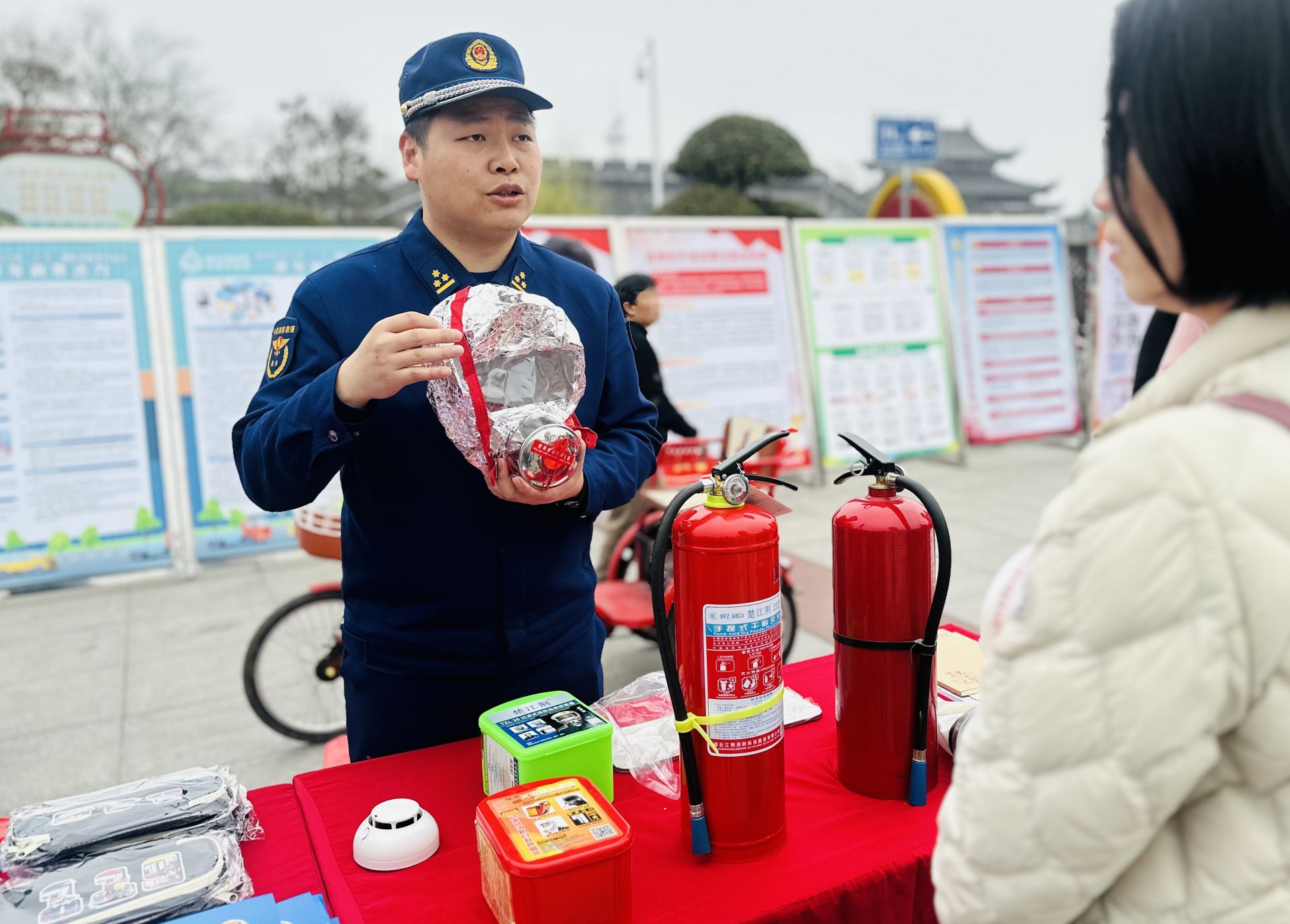 消防宣傳員現(xiàn)場(chǎng)講解消防產(chǎn)品知識(shí) 張曼 攝
