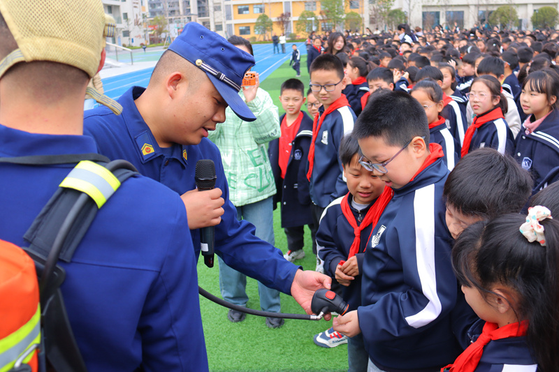 在互動(dòng)環(huán)節(jié),消防救援人員展示了空呼、無(wú)齒鋸、鼓風(fēng)機(jī)等隨車(chē)器材,邀請(qǐng)同學(xué)們進(jìn)行了戰(zhàn)斗服著裝體驗(yàn)和“零距離”滅火實(shí)操,并演示了單干線出水操法。對(duì)于同學(xué)們來(lái)說(shuō),這些活動(dòng)即新穎又獨(dú)特,讓大家在寓教于樂(lè)中學(xué)習(xí)到了簡(jiǎn)單實(shí)用的消防知識(shí)。
