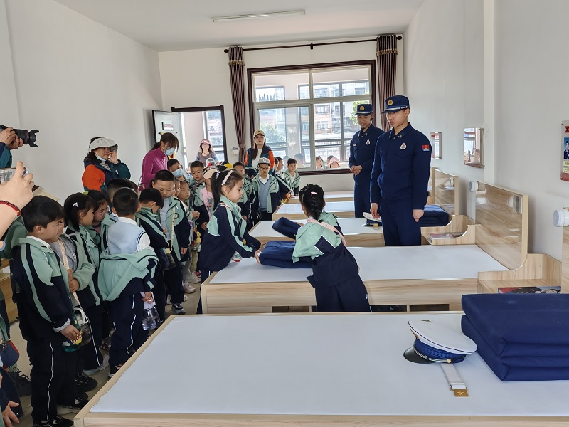 活動期間,萌娃們還參觀了消防員宿舍。一走進(jìn)宿舍,小朋友們就被明凈整潔的營房、整齊劃一的內(nèi)務(wù)擺放、棱角分明的被子所吸引。“這個被子是硬的嗎?”在好奇心的驅(qū)使下,小朋友們紛紛學(xué)習(xí)疊“豆腐塊”被子的技巧。