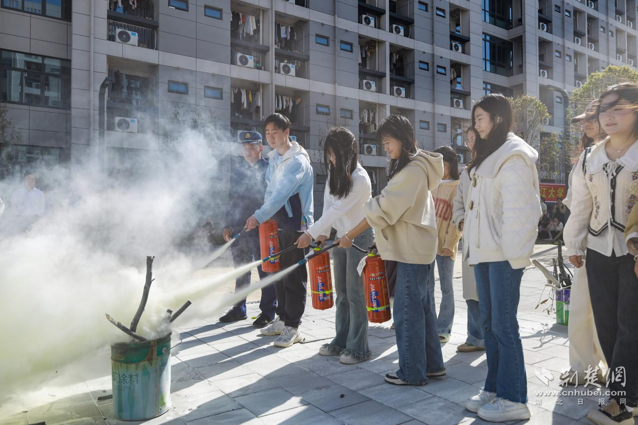 滅火器是常用的消防器材,消防救援人員對常用滅火器使用方法進行詳細分步驟講解,學生們躍躍欲試,積極參與實操使用。“我們精心組織大家通過室內(nèi)宣傳教育培訓,同上《我的大學 我的消防安全課》;室外學習消防器材,近距離接觸消防,親身感受體驗,提升了消防安全意識和火災逃生能力,整個過程收獲滿滿。”“火焰藍”大學生志愿者服務隊的一名同學滿心歡喜的說道。活動最后在消防救援人員和師生代表以及“火焰藍”大學生志愿者服務隊的大合影中圓滿落幕。