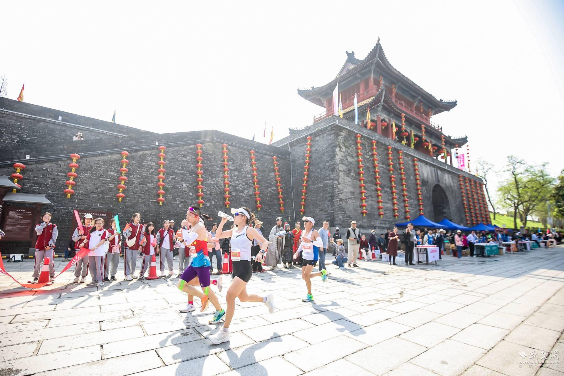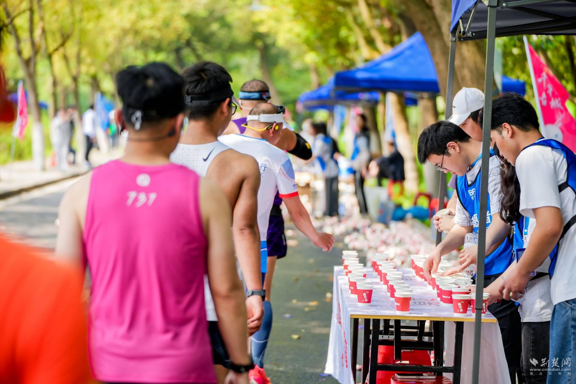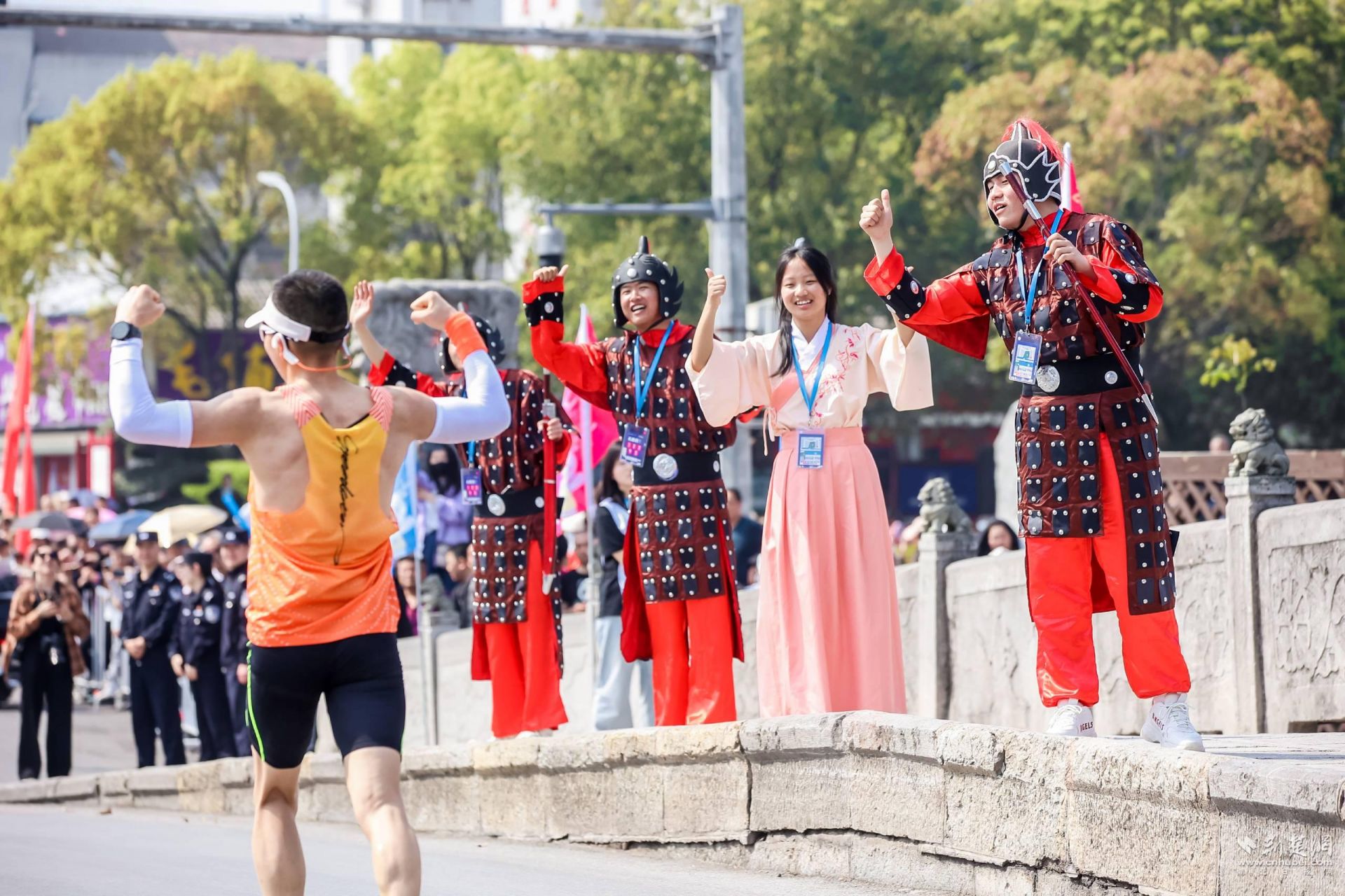 賽前協(xié)調(diào)近400輛大巴車(chē)提供選手接駁;推出8條春季賞花路線,并針對(duì)參賽選手及賽事相關(guān)人員推出了多景區(qū)優(yōu)惠政策;為應(yīng)對(duì)高溫天氣,組委會(huì)在賽道上設(shè)置了12個(gè)噴淋點(diǎn)、6臺(tái)霧炮車(chē)、提供冰水冰塊為選手降溫;賽道上還設(shè)置8個(gè)飲水/飲料站,7個(gè)飲水/用水站,7個(gè)能量補(bǔ)給站,提供面包、飲料、飲水、水果、能量膠、鹽丸等補(bǔ)給。