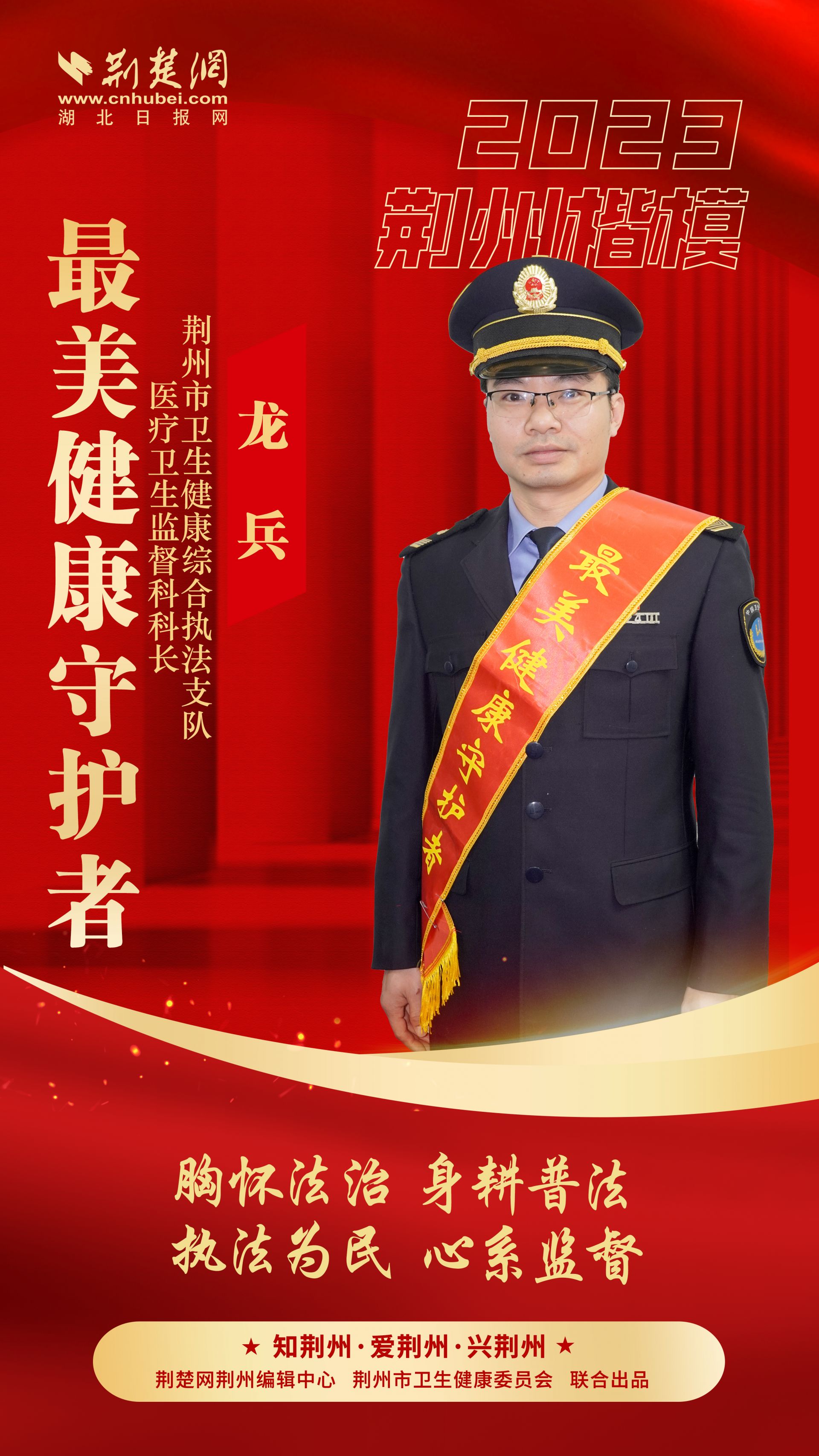 荊州市衛(wèi)生健康綜合執(zhí)法支隊(duì)醫(yī)療衛(wèi)生監(jiān)督科科長(zhǎng)龍兵,他懷揣“執(zhí)法為民,護(hù)衛(wèi)健康”的初心,守衛(wèi)著人民的生命健康與就醫(yī)安全。