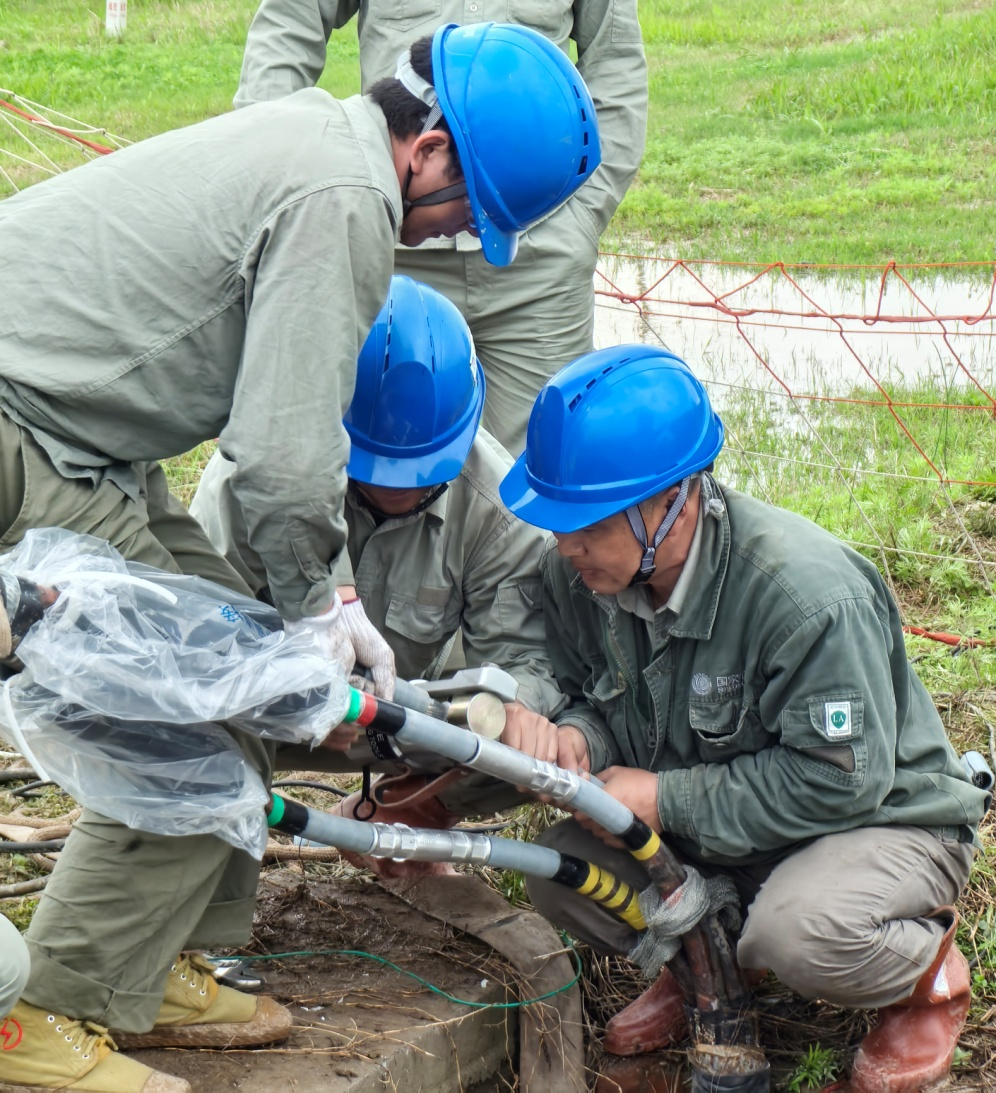 查明情況后,搶修隊(duì)旋即針對故障“量身定制”最優(yōu)搶修方案,委托園區(qū)負(fù)責(zé)人迅速調(diào)配原廠原型號配件,并同時(shí)向上級報(bào)送安全施工手續(xù)。在向園區(qū)負(fù)責(zé)人和企業(yè)代表們簡要說明故障情況和解決方案并做好安全、技術(shù)和組織措施后,搶修隊(duì)冒雨開展作業(yè)。隊(duì)員們先剪斷故障點(diǎn)附近的電纜,再利用預(yù)留電纜高質(zhì)量安裝中間接頭并順利通過高壓試驗(yàn)。經(jīng)過10多小時(shí)的奮戰(zhàn),當(dāng)天傍晚7時(shí)許,該園區(qū)400多家企業(yè)全部恢復(fù)供電。