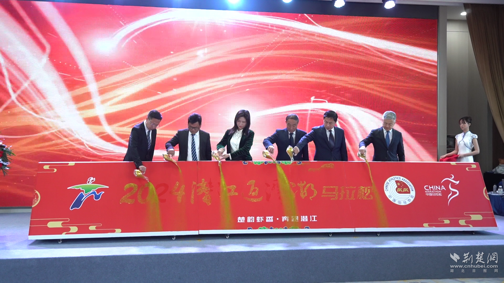 4月9日,潛江市召開2024潛江返灣湖馬拉松新聞發(fā)布會,舉行賽事啟動儀式,正式公布本屆潛江返灣湖馬拉松的參賽服、參賽包與完賽獎牌。