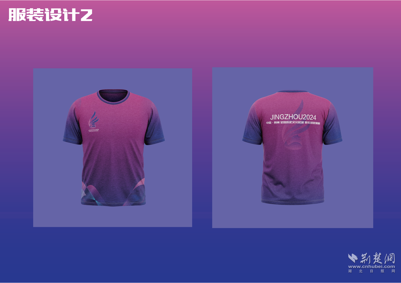 本次賽事的Logo設計靈感源自于對荊州歷史文化的深度挖掘,并巧妙地融入現(xiàn)代設計元素。色彩上選擇了漸變的紫色,象征著古老與現(xiàn)代的和諧交融,既凸顯了荊州悠久的歷史底蘊,又展現(xiàn)了現(xiàn)代都市的活力與開放。Logo的中心巧妙地采用了抽象化的鳳凰羽毛形狀,展示荊州人民熱情好客、文明有禮的精神面貌。