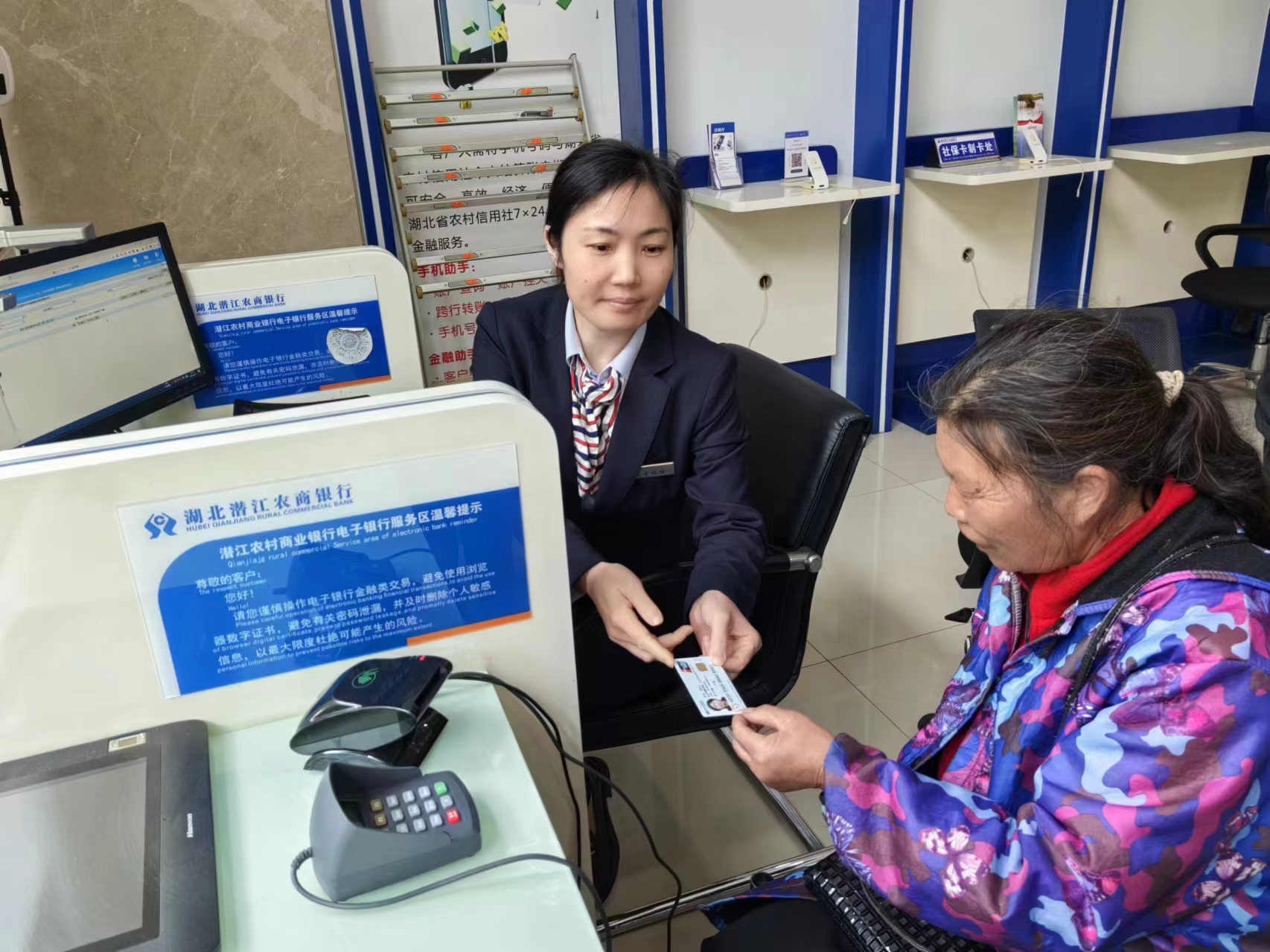 線下“就近辦”。目前,潛江市社??I(yè)務(wù)已延伸至23個(gè)區(qū)鎮(zhèn)街道的82家社??ǚ?wù)網(wǎng)點(diǎn),并在服務(wù)網(wǎng)點(diǎn)顯著位置懸掛“湖北省社會(huì)保障卡服務(wù)點(diǎn)標(biāo)識(shí)”。辦事群眾只需攜帶本人身份證件原件就近到社??ǚ?wù)網(wǎng)點(diǎn)就可辦理社??ㄉ觐I(lǐng)、補(bǔ)換、社保賬戶激活和密碼修改、金融賬戶激活等業(yè)務(wù)。