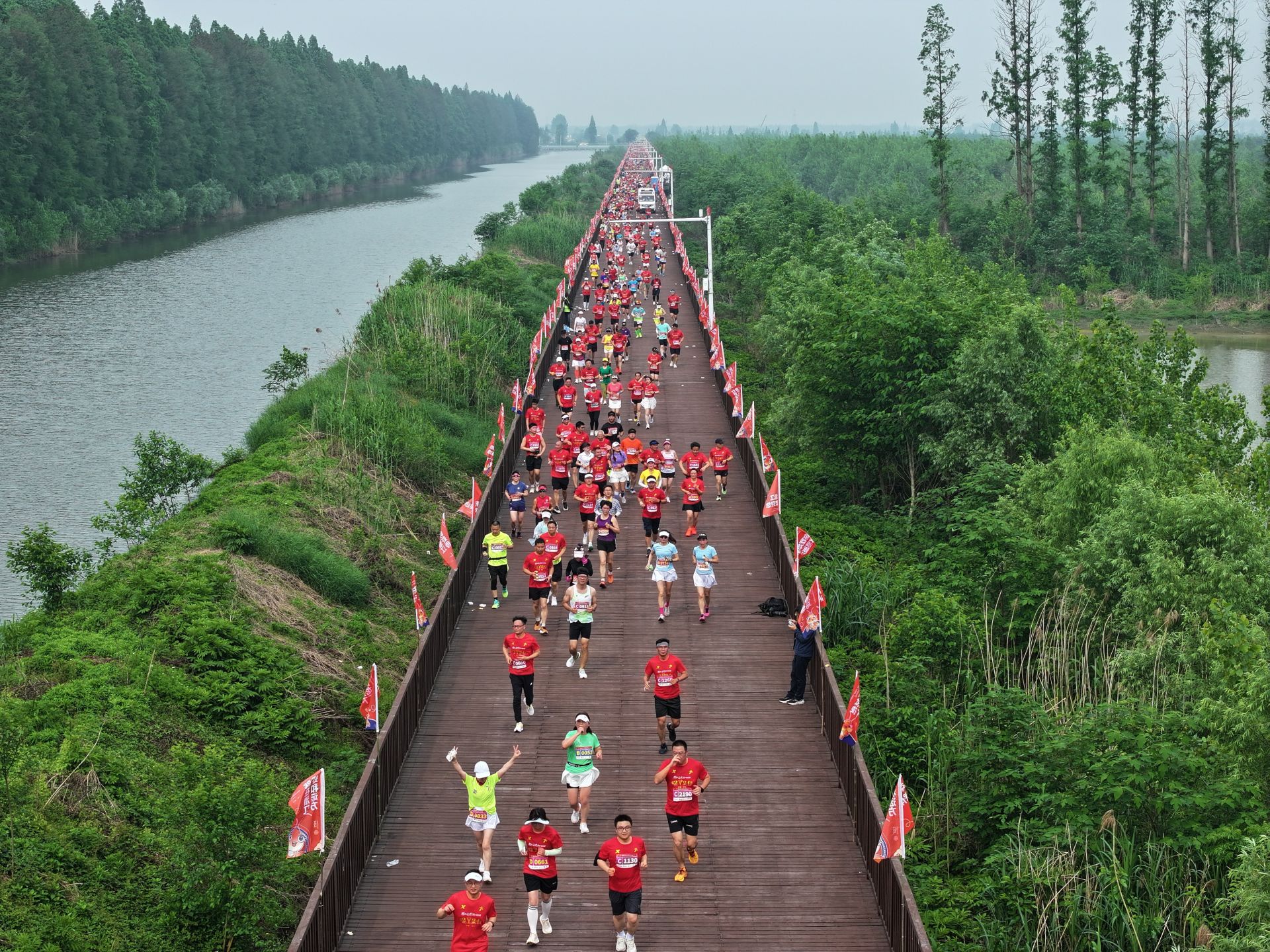 2024潛江返灣湖馬拉松42.195公里賽道,依舊環(huán)繞返灣湖國家級濕地公園,一路穿過郁郁蔥蔥的水杉林,越過臨水而起的彩虹棧橋,沿線移步換景,跑者身心愉悅。