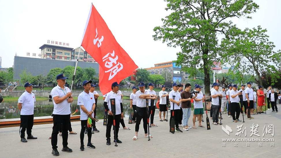 洪湖市人大常委會副主任張群安出席儀式并講話,市文化和旅游局黨組書記、局長崔巍為龍舟集訓(xùn)隊(duì)授旗。
