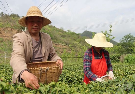 人間四月芳菲盡,山中茶園才開張。順著蜿蜒山道一路向上,文峪河村里,一畦畦碧綠的茶園郁郁蔥蔥,隨處可見茶農(nóng)采茶忙碌的身影 。