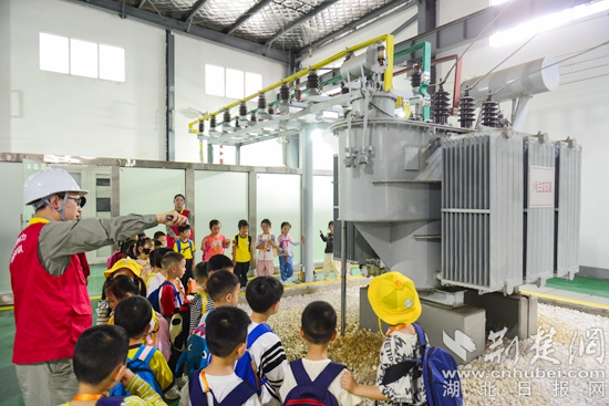 電力工作人員帶領(lǐng)小朋友們實(shí)地參觀展區(qū),學(xué)習(xí)電力知識(shí)。通訊員 供圖