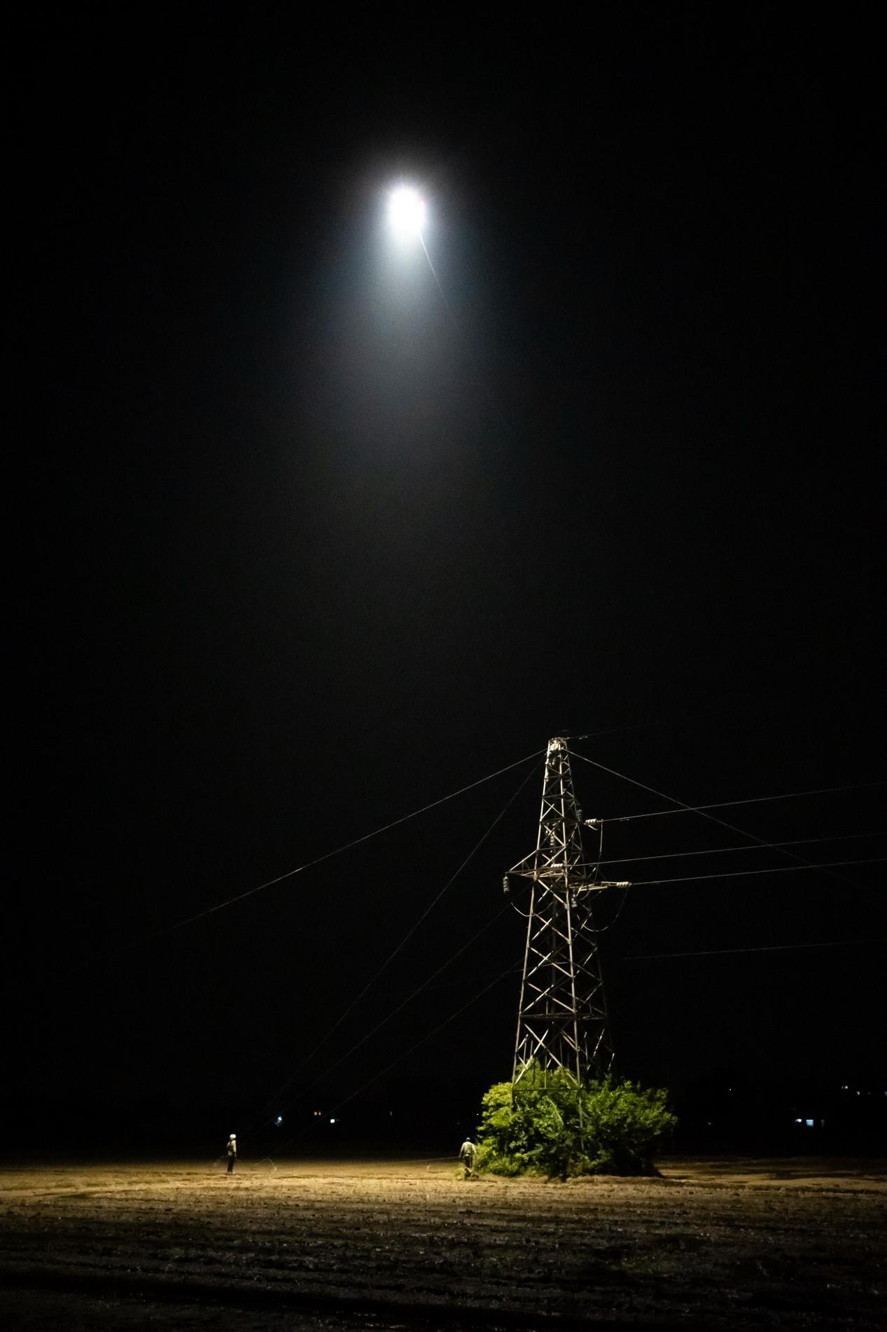 4月27日晚,在荊州觀音垱小學(xué)附近的35千伏坮觀線技改施工現(xiàn)場(chǎng),“鄂電紅馬甲”正在操作一系留照明無(wú)人機(jī),隨著無(wú)人機(jī)高度的上升,點(diǎn)亮的面積不斷擴(kuò)大,照亮了整個(gè)坮觀線施工現(xiàn)場(chǎng),成為夜空中一顆“最亮的星”。