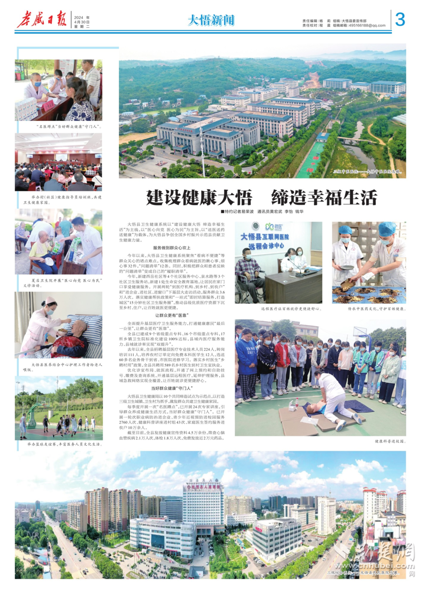 荊楚網(wǎng)(湖北日報(bào)網(wǎng))訊 (通訊員 易榮波 黃宏武 李怡 錢華) 近年來,孝感市大悟縣衛(wèi)生健康系統(tǒng)以“建設(shè)健康大悟 締造幸福生活”為主線,以“醫(yī)心向黨 醫(yī)心為民”為主旨,以“送醫(yī)送藥送健康”為載體,為大悟縣爭創(chuàng)全國鄉(xiāng)村振興示范縣貢獻(xiàn)衛(wèi)生健康力量。