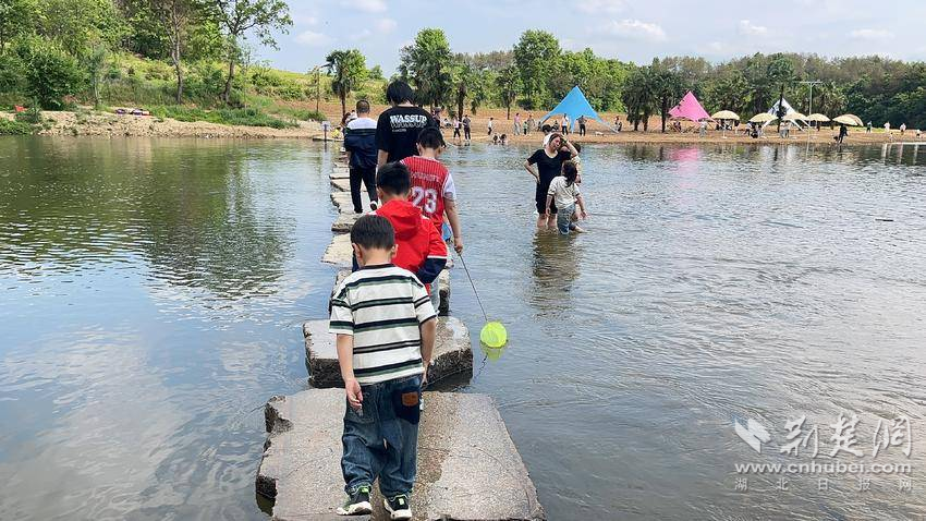 荊楚網(wǎng)(湖北日?qǐng)?bào)網(wǎng))訊(通訊員 易榮波 李怡 李思嫄 陽(yáng)鵬)“五一”假期,武漢、河南等地的眾多游客慕名來(lái)到孝感市大悟縣伴山河畔露營(yíng)公園打卡游玩。景區(qū)內(nèi)河水碧波,柳樹成蔭,游客們?cè)诤又袘蛩?,燒烤露營(yíng),林間漫步,沙灘休憩,盡情享受自然、放松心情。