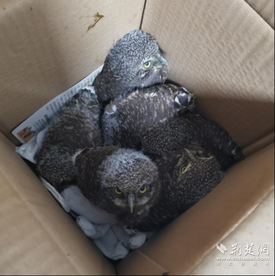 荊楚網(wǎng)(湖北日報網(wǎng))訊 (通訊員 陳張川琦)4月24日,在孝南區(qū)楊店鎮(zhèn)的一片樹木周圍,4只可愛的貓頭鷹幼崽不慎從巢穴墜落至地面。幸運的是,它們被熱心群眾及時發(fā)現(xiàn),并送往孝南區(qū)野生動物和森林植物保護監(jiān)測站(以下簡稱“野保站”)得到了細心救助。緊接著,在4月30日,又有6只貓頭鷹幼崽在孝南區(qū)三汊鎮(zhèn)的高壓線附近被群眾發(fā)現(xiàn)并送至野保站。