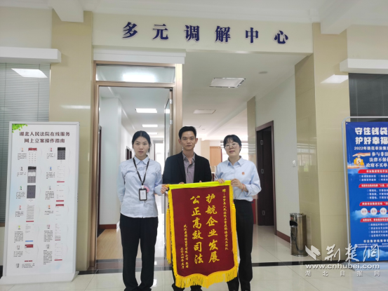 荊楚網(湖北日報網)訊(通訊員 鄧洋洋)“感謝立案庭,貨款這么快就追回來了?!苯冢錆h某商貿有限公司將一面寫著“護航企業(yè)發(fā)展,公正高效司法”的錦旗送至云夢法院訴訟服務中心,向立案庭訴調對接團隊工作人員表示感謝。