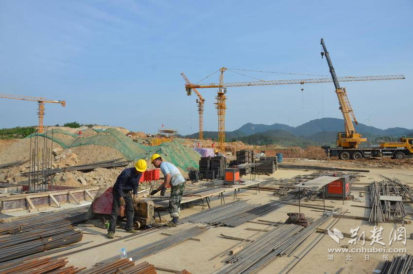 5月14日,位于大悟經(jīng)濟開發(fā)區(qū)總投資1億元的中水環(huán)保新科技項目建設(shè)現(xiàn)場,8000平方米的鋼構(gòu)廠房主體已封頂,工人正在砌筑隔斷墻,辦公樓建設(shè)正在打樁。