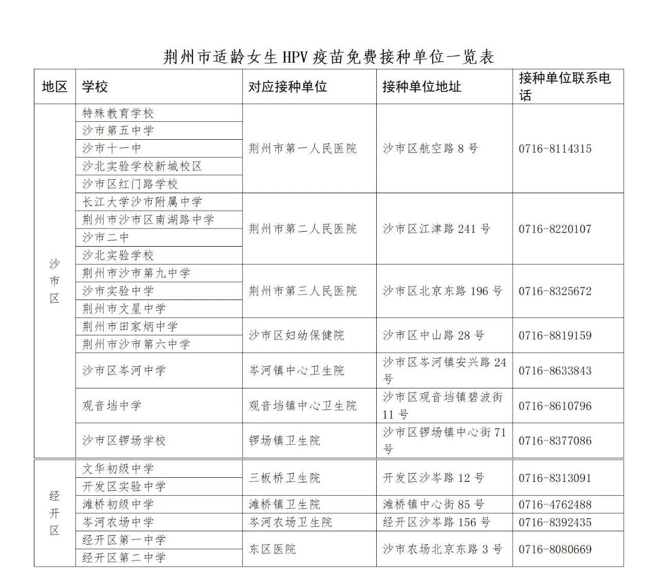 按照荊州市衛(wèi)健委、荊州市教育局等四部門印發(fā)的《荊州市適齡女生人乳頭瘤病毒疫苗免費(fèi)接種項(xiàng)目實(shí)施方案》,目前,荊州市正式啟動適齡女生2價HPV疫苗免費(fèi)接種活動。