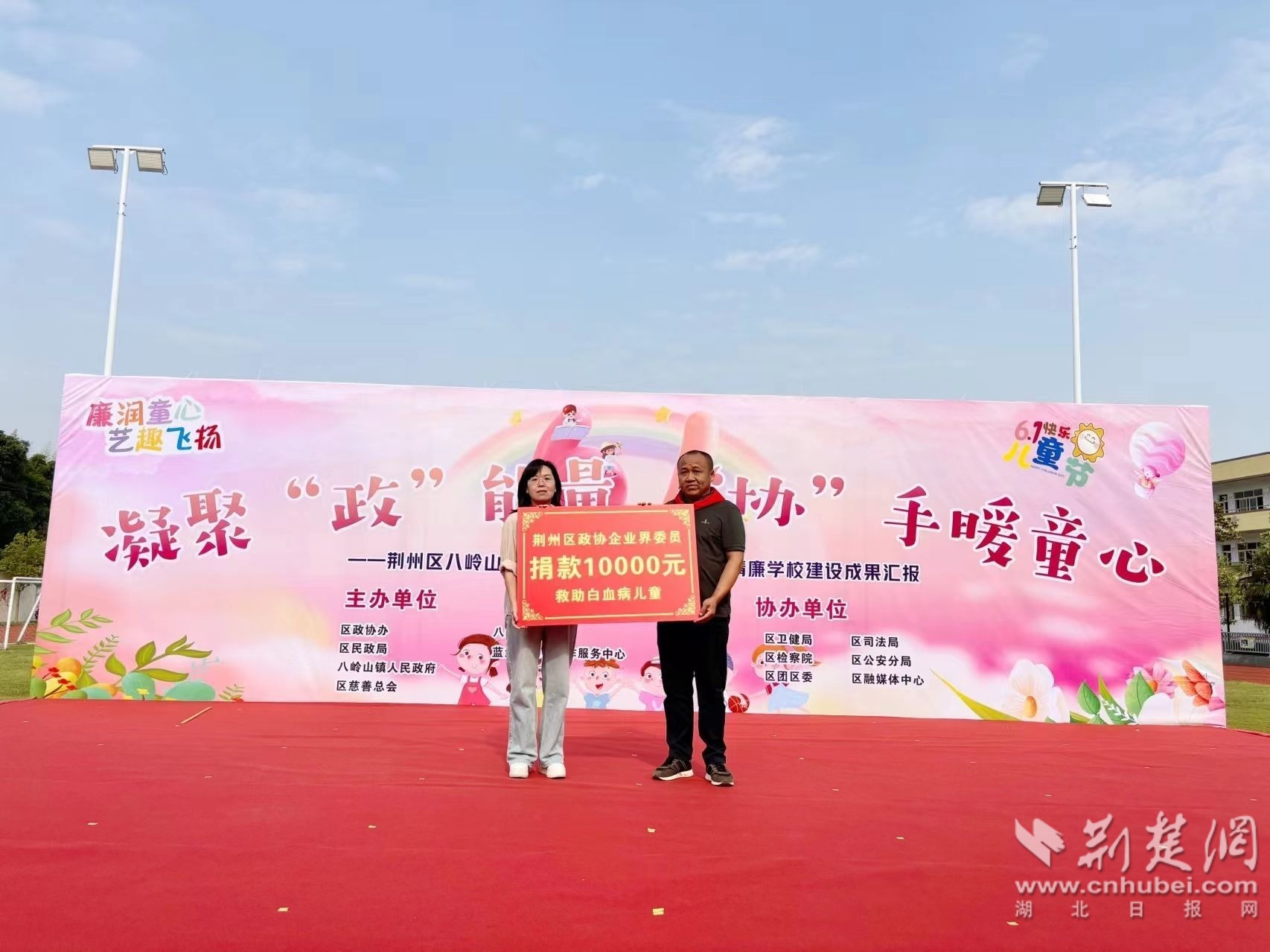 荊楚網(wǎng)(湖北日?qǐng)?bào)網(wǎng))訊(通訊員肖敏)第74個(gè)國(guó)際兒童節(jié)來(lái)臨之際,荊州區(qū)政協(xié)、區(qū)民政局聯(lián)合發(fā)起 “凝聚‘政’能量 ‘協(xié)’手暖童心”為主題的關(guān)愛(ài)未成年人保護(hù)系列活動(dòng)?;顒?dòng)于5月31日在八嶺山小學(xué)正式拉開帷幕,同時(shí)邀請(qǐng)了教育、司法等9個(gè)區(qū)直單位、11家愛(ài)心企業(yè)與學(xué)校400余師生共同參加,并欣賞孩子們帶來(lái)的“六一”精彩節(jié)目。