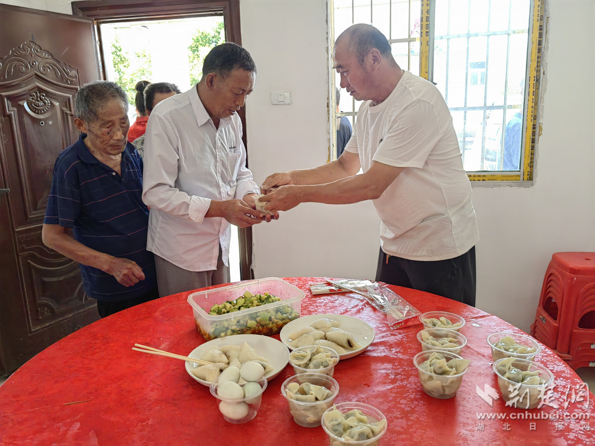 在大家的共同努力下,一個個冒著熱氣的粽子和餃子出鍋了。志愿者們將煮好的粽子和水餃送餐到易遷點幸福食堂,和老人們一起分享端午節(jié)的快樂。小小的粽子傳承了中華民族尊老愛老的優(yōu)良文化傳統(tǒng),也讓易遷點的老人真切感受到濃濃的端午節(jié)日氛圍。