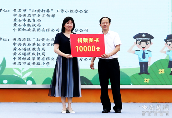 中國郵政集團(tuán)有限公司黃石城區(qū)分公司副總經(jīng)理柯海平表示,將積極參與“掃黃打非”工作,落實(shí)郵政快遞業(yè)“收寄驗(yàn)視、實(shí)名登記、過機(jī)安檢”三項(xiàng)制度,加大“畫像法”的宣貫力度,嚴(yán)防非法出版物流入寄遞渠道;積極宣傳“掃黃打非”有關(guān)政策法規(guī),引導(dǎo)告知廣大群眾不得寄遞非法有害出版物,共同助力未成年人健康成長,并向黃石市武黃路小學(xué)捐贈1萬元圖書。