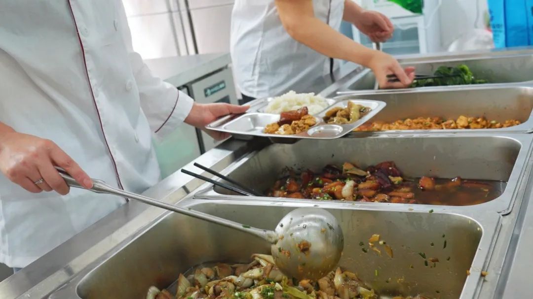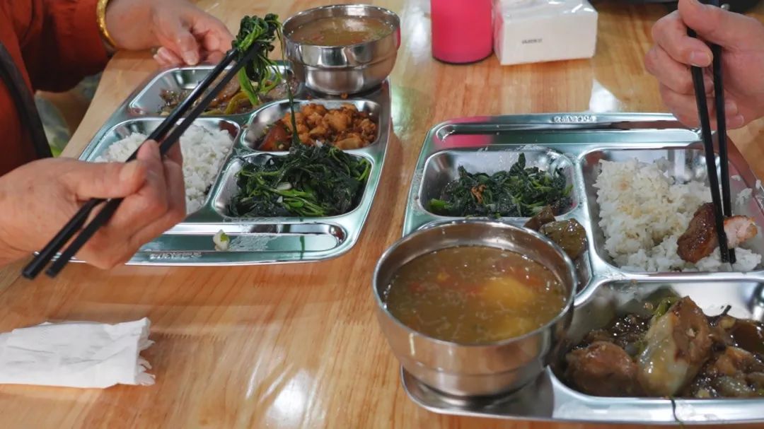 臨近飯點(diǎn),“幸福食堂”里的飯菜香氣撲鼻而來(lái),花園紅燒肉、肉沫豆腐、油淋茄子、炒青菜、蘑菇湯……