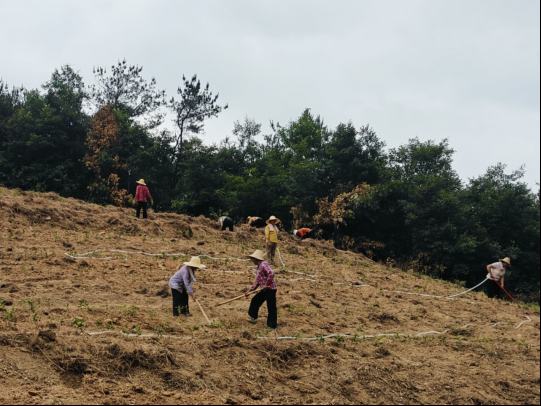 “大家栽種的時候注意間距,覆土要壓緊壓實,不要損傷茶苗?!卑撞杌刎撠熑诵锣l(xiāng)賢江軍華正在指導大家栽種茶苗。