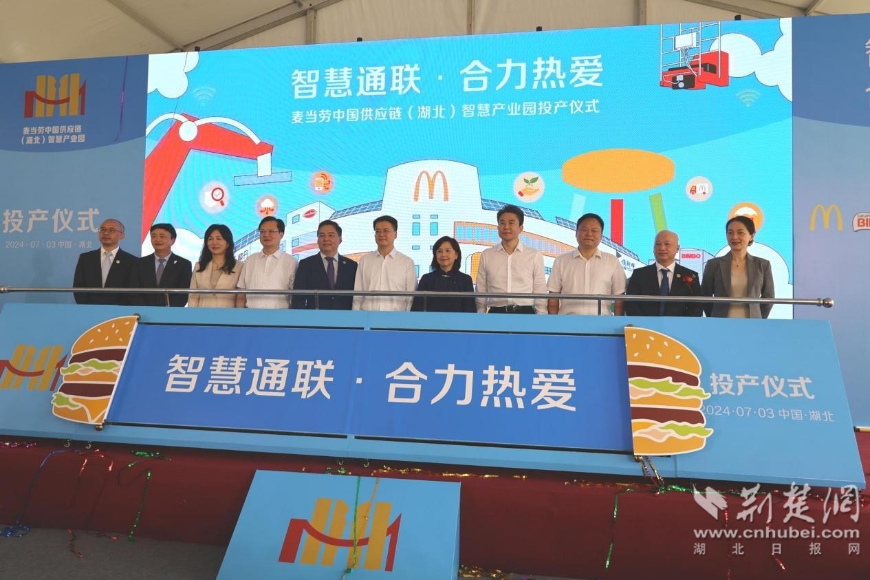 荊楚網(wǎng)(湖北日報(bào)網(wǎng))訊(記者舒俊杰 通訊員宓天鵬 陳培 趙程)7月3日,麥當(dāng)勞中國供應(yīng)鏈(湖北)智慧產(chǎn)業(yè)園(以下簡稱“麥當(dāng)勞智慧產(chǎn)業(yè)園”)投產(chǎn)典禮儀式在孝感市孝南區(qū)漢孝產(chǎn)業(yè)新城舉行,省商務(wù)廳黨組書記、廳長王濟(jì)民,孝感市領(lǐng)導(dǎo)吳慶華、夏齊勇,孝南區(qū)領(lǐng)導(dǎo)張全民、姚惠萍、陳義華、吳華國、周冠城、侯昱峰、胡長家出席活動(dòng)。