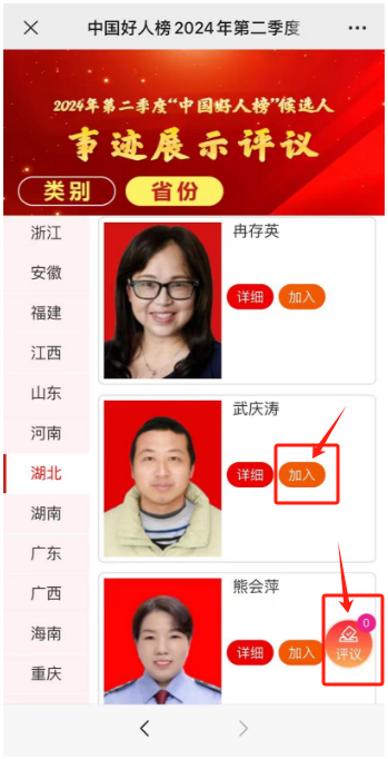 4、“加入”你選擇的好人,點(diǎn)擊“評(píng)議”按鈕
