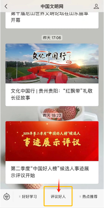 2、在公眾號(hào)菜單欄選擇“評(píng)議好人”