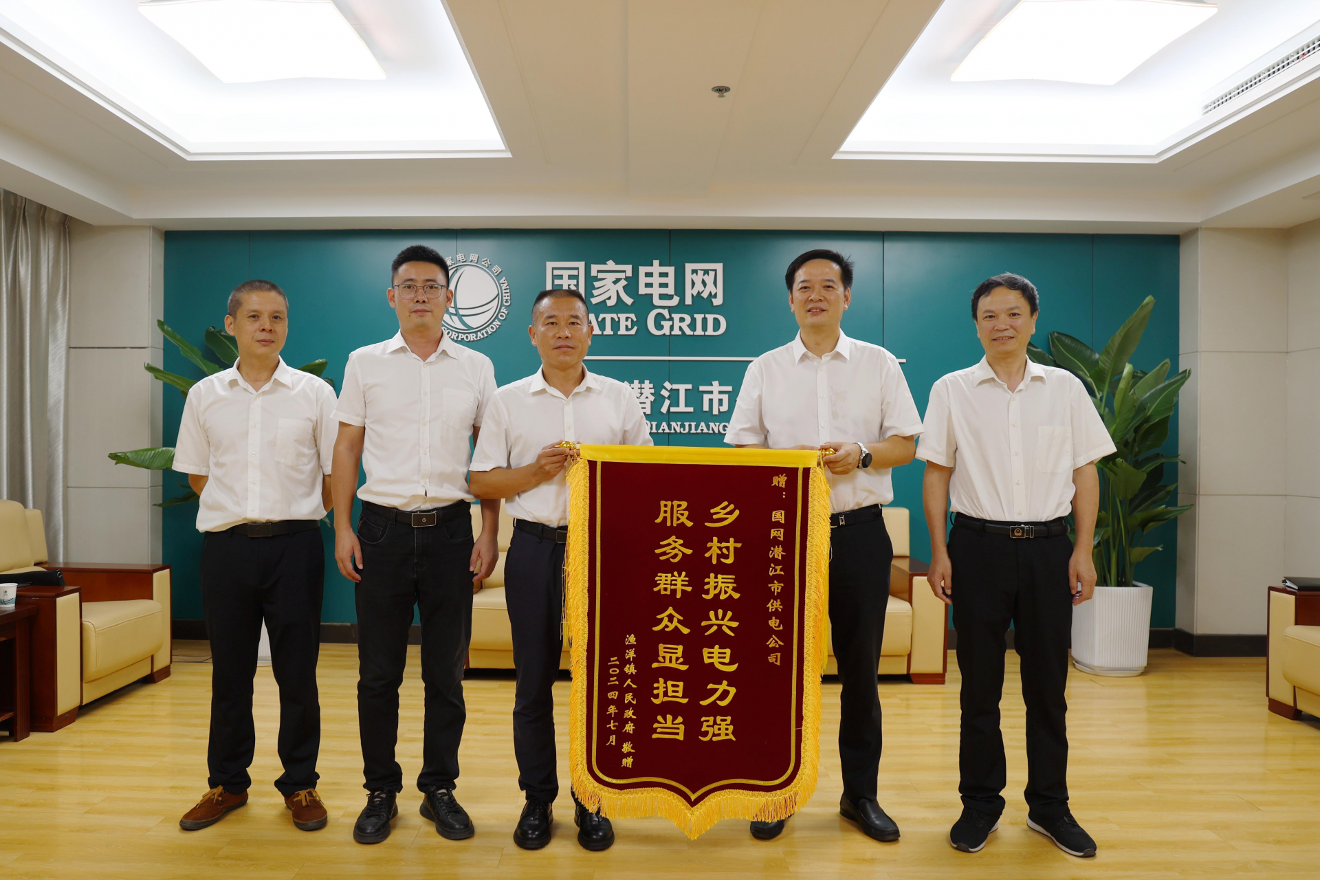 荊楚網(wǎng)(湖北日?qǐng)?bào)網(wǎng))訊(通訊員 魯擁軍)“感謝供電公司迅速解決我們漁洋鎮(zhèn)雷樂(lè)村還建宅基地的用電難題,我代表村民們?yōu)槟銈儭姳D贰母咝Х?wù)點(diǎn)贊!”7月12日,潛江市漁洋鎮(zhèn)鎮(zhèn)長(zhǎng)章云、副鎮(zhèn)長(zhǎng)李冰將一面印有“鄉(xiāng)村振興電力強(qiáng),服務(wù)群眾顯擔(dān)當(dāng)”的錦旗送到國(guó)網(wǎng)潛江市供電公司黨委書(shū)記李俊的手中。