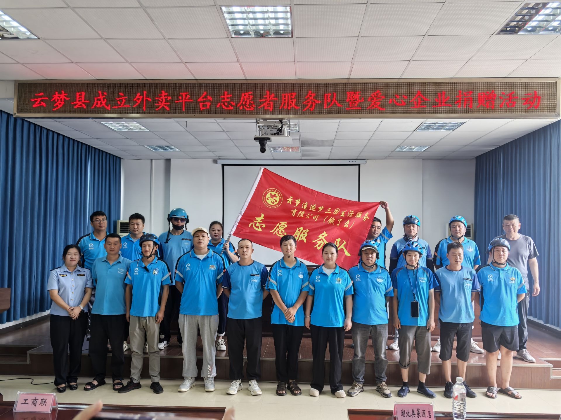 活動(dòng)現(xiàn)場,由管理者和優(yōu)秀騎手組成“湖北齊夢快餐配送有限公司(美團(tuán))志愿服務(wù)隊(duì)”和“云夢追逐夢三國生活服務(wù)有限公司(餓了么)志愿服務(wù)隊(duì)”正式成立并宣誓;縣市場監(jiān)管局和湖北奧萊酒店管理有限公司、云夢縣臻品神舟西餐廳兩家愛心企業(yè)共同向志愿隊(duì)贈(zèng)送“愛心大禮包”。