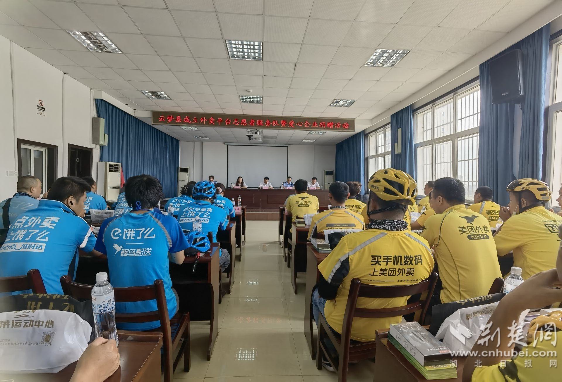 荊楚網(wǎng)(湖北日報(bào)網(wǎng))訊(通訊員 胡慶玉 周四強(qiáng))7月16日,云夢縣外賣平臺(tái)志愿服務(wù)隊(duì)成立暨愛心企業(yè)捐贈(zèng)活動(dòng)在縣市場監(jiān)管局舉行,縣委組織部副部長李新進(jìn),縣委社工部副部長冷軍利,縣工商聯(lián)主席王景,縣市場監(jiān)管局黨組書記、局長程漢軍出席并向志愿隊(duì)授旗,縣內(nèi)2家愛心企業(yè)和美團(tuán)、餓了么外賣平臺(tái)40余名騎手參加活動(dòng)。